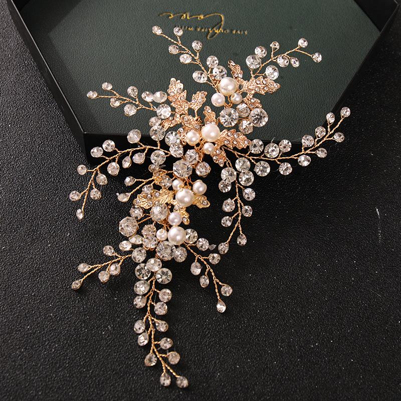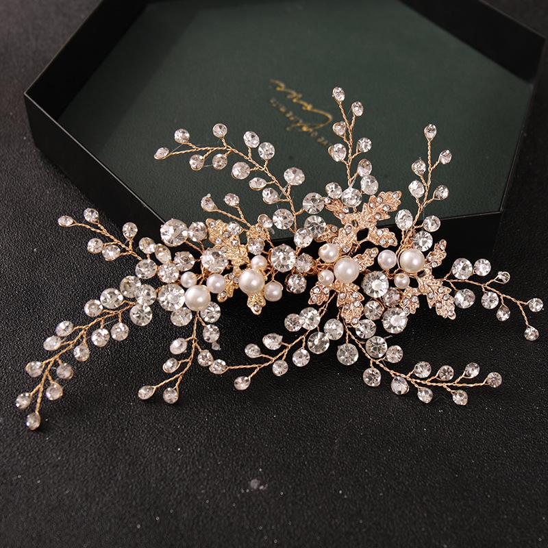 Tuan Ming Diadema para el Cabello de Novia Europea y Americana Tocado Amazon Más Vendido Diadema de Hoja Dorada Accesorios Diadema de Perlas Hecha a Mano