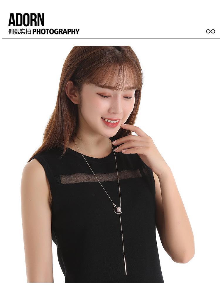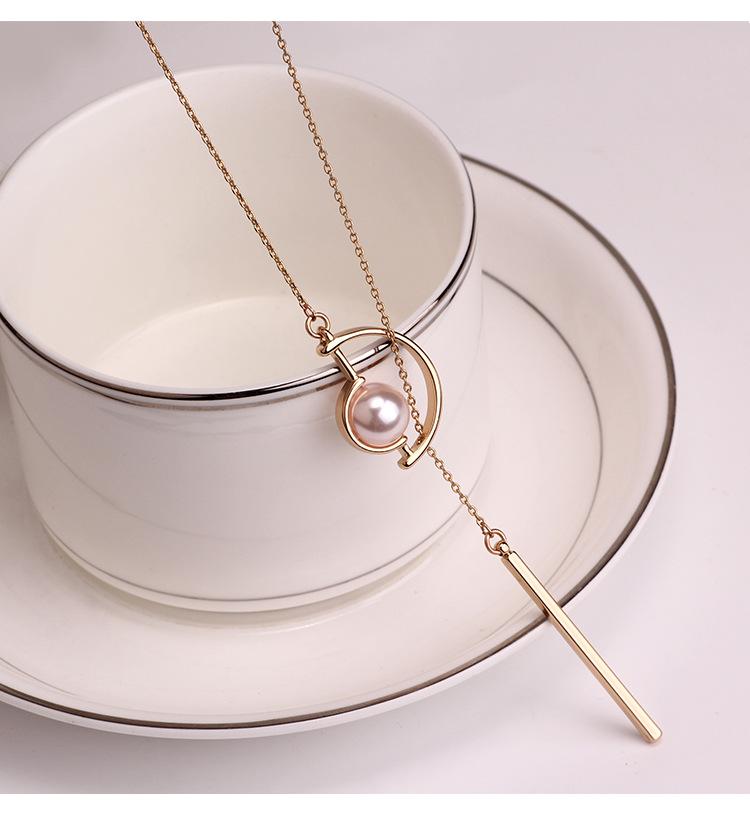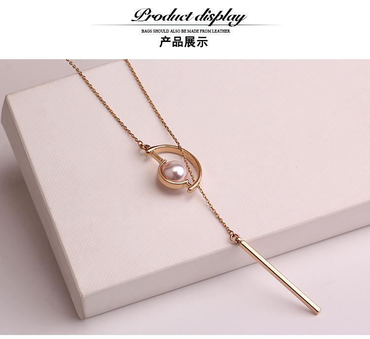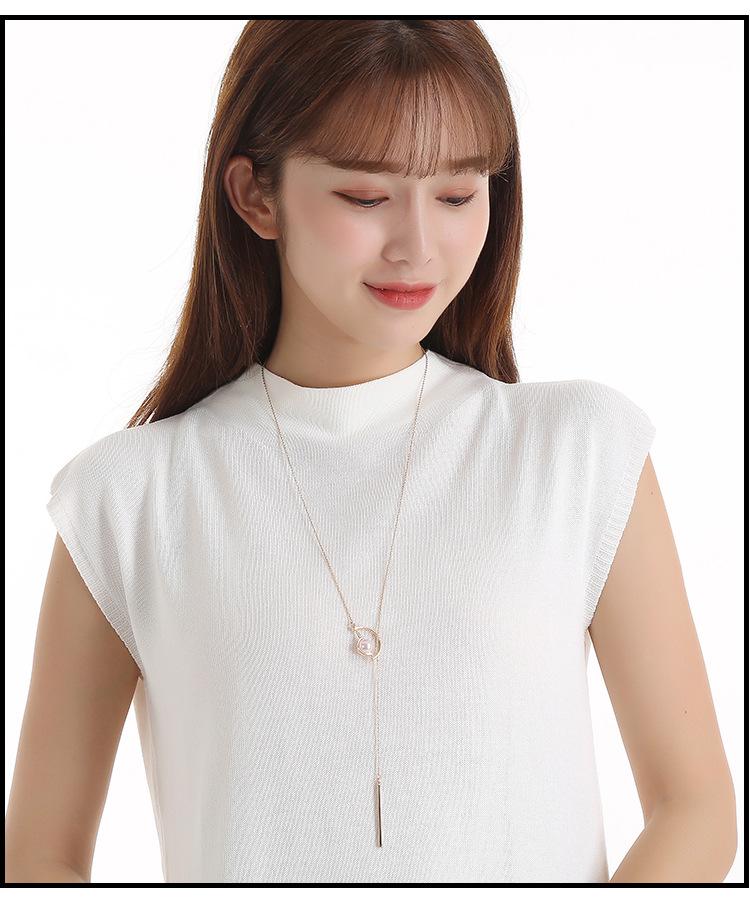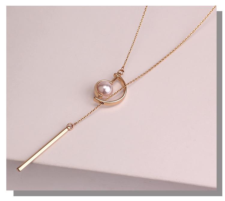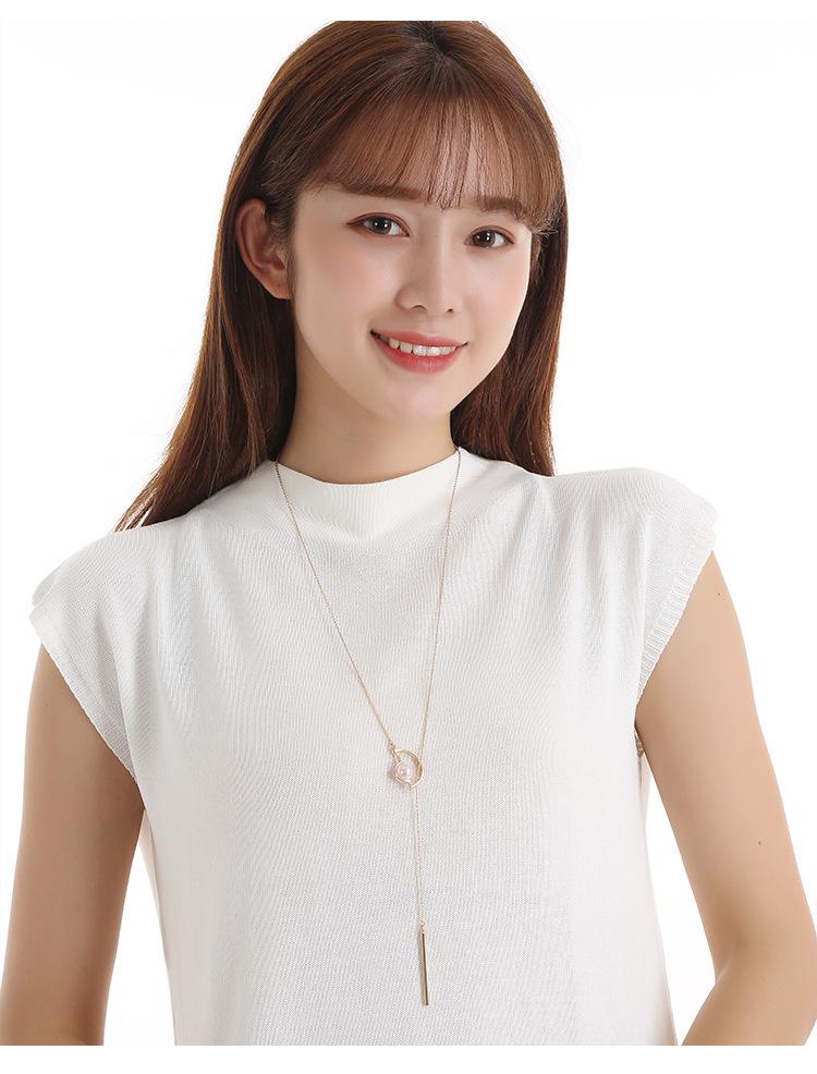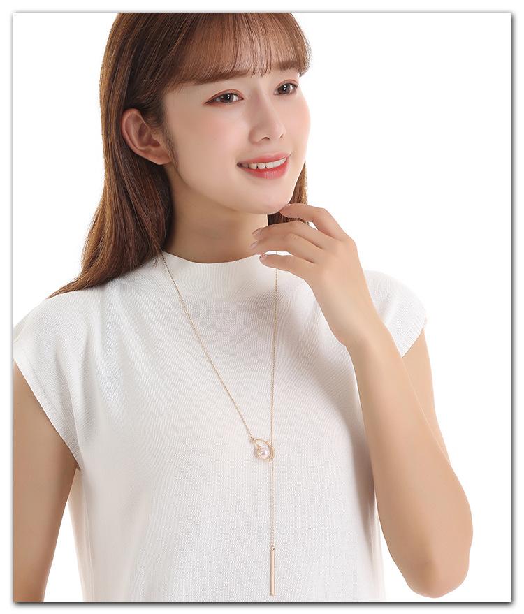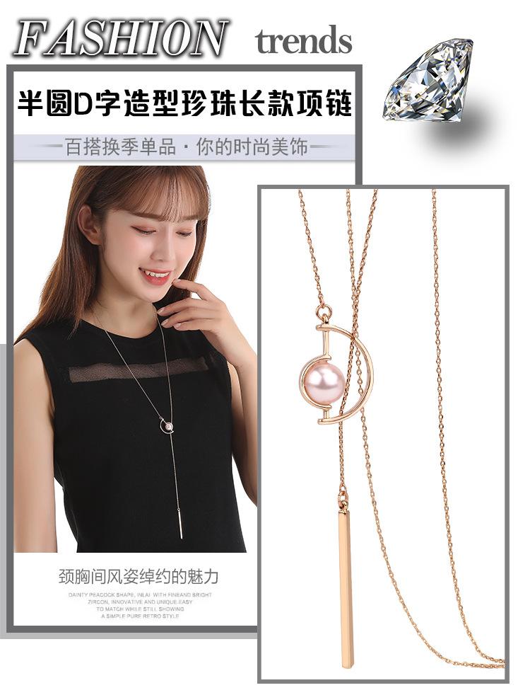 Cadena de suéter con perla ovalada y circonita para mujer, accesorios de collar largo sencillo, venta al por mayor transfronteriza, otoño e invierno de 2021