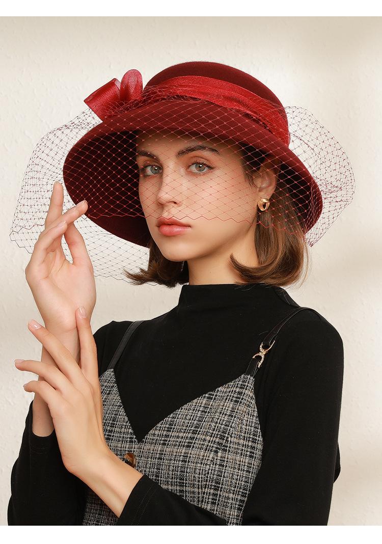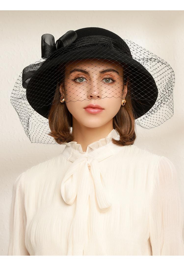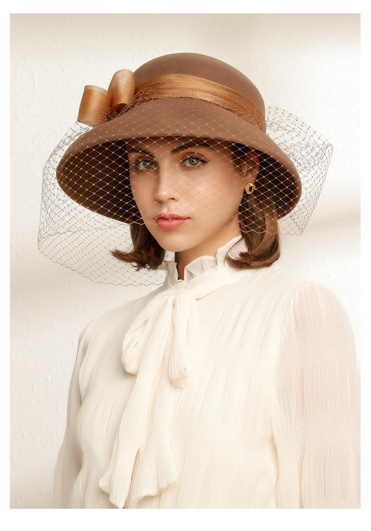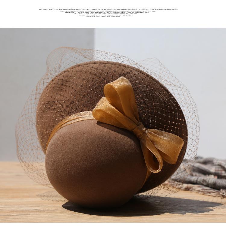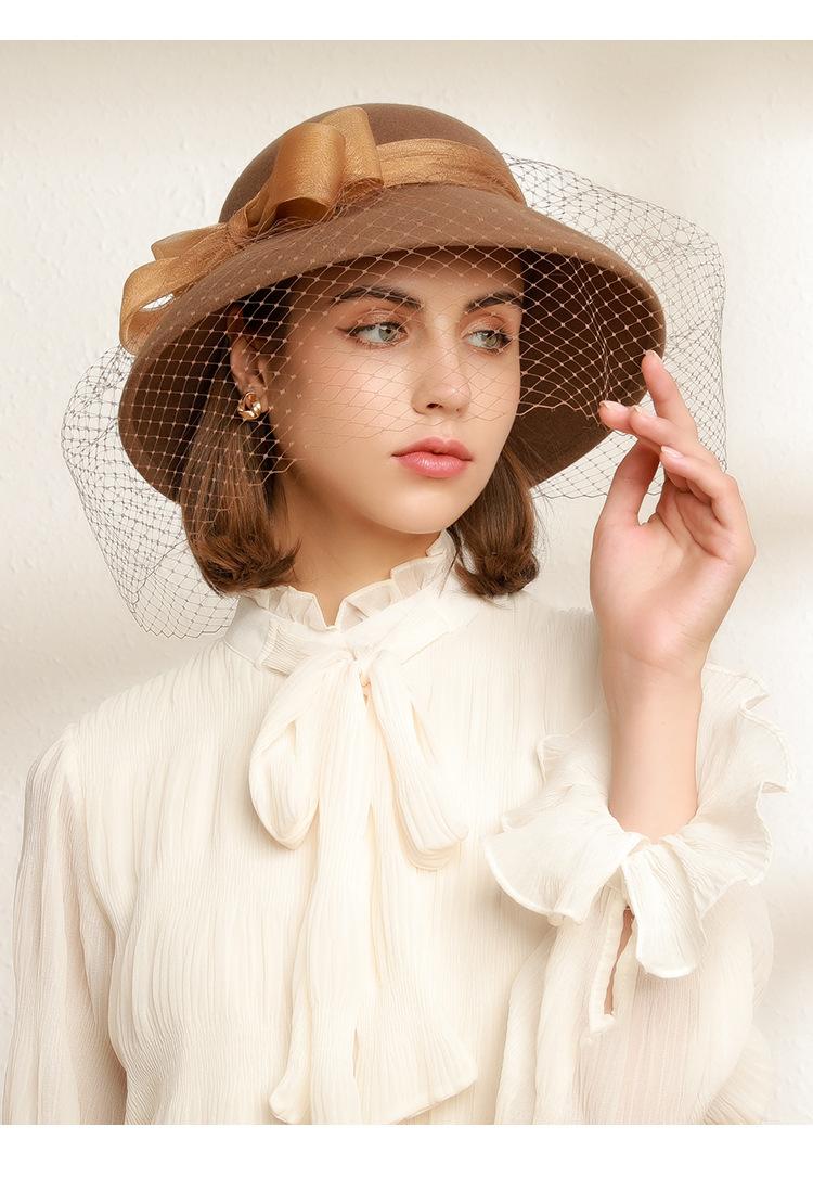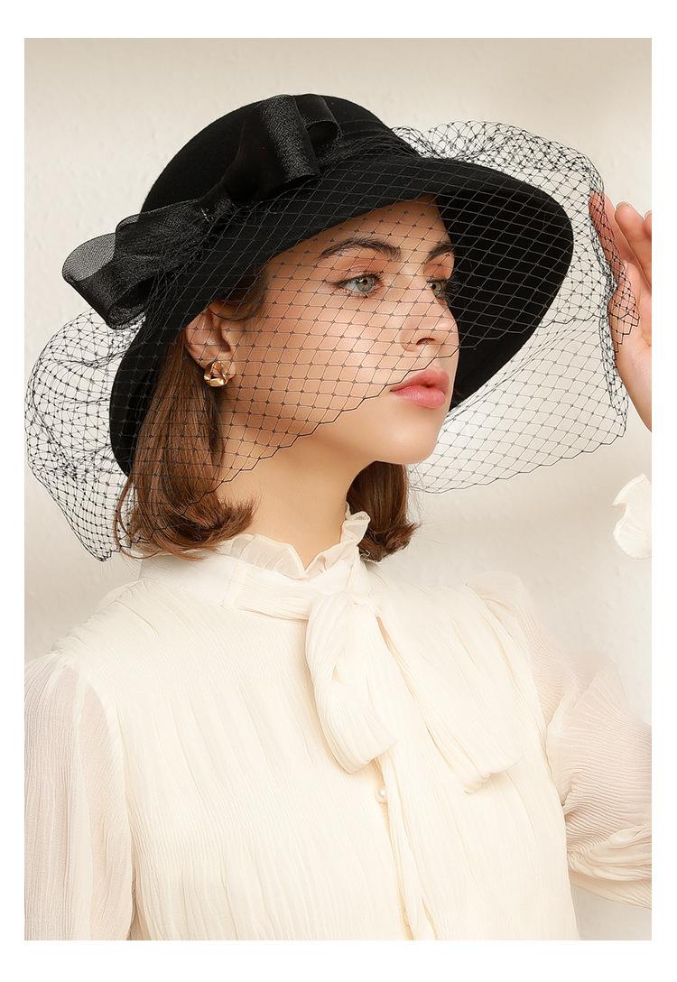 Sombrero de lavabo de lana Rongmei para otoño e invierno, estilo europeo y americano, estilo retro, con lazo francés y malla de pescador.
