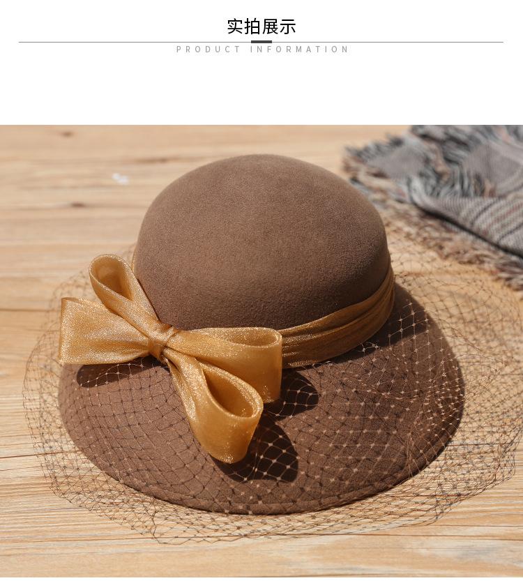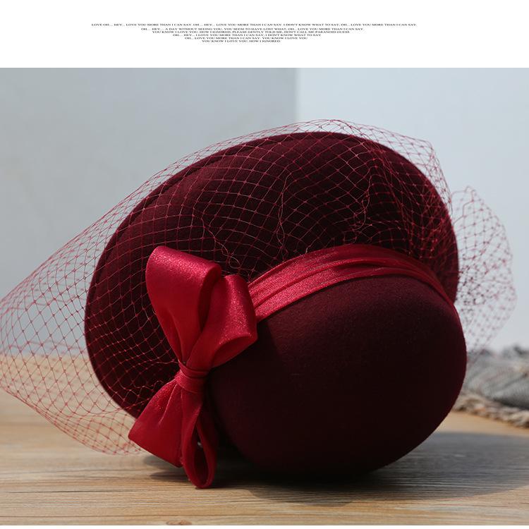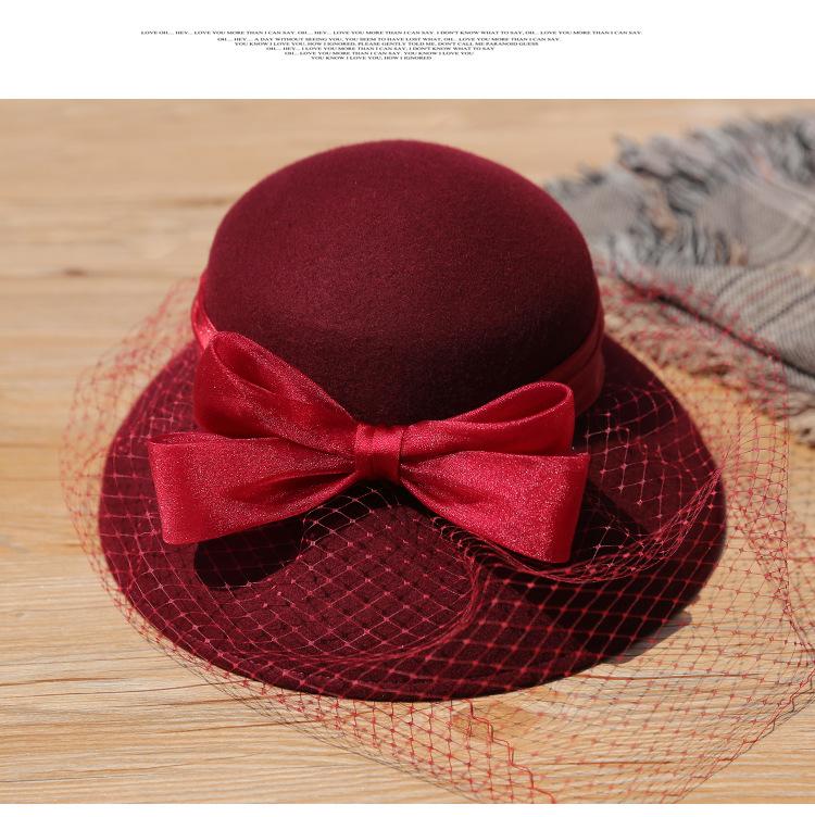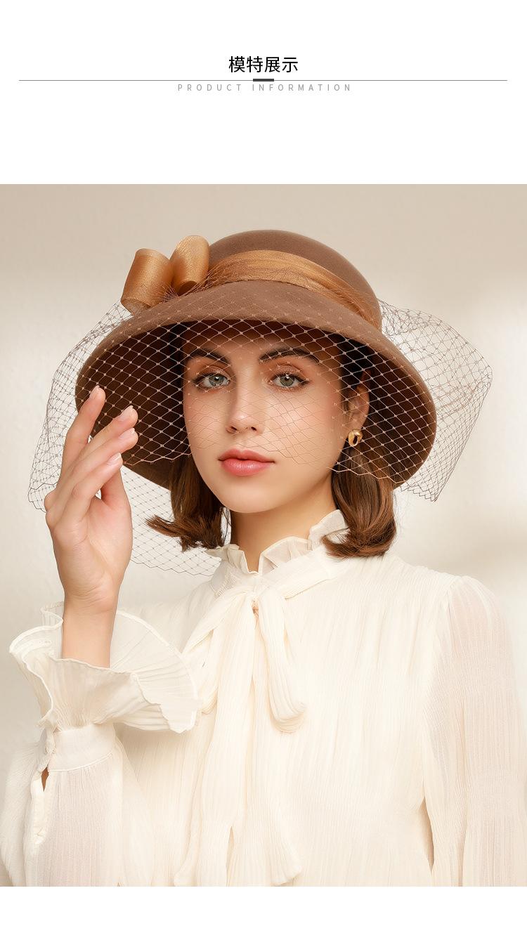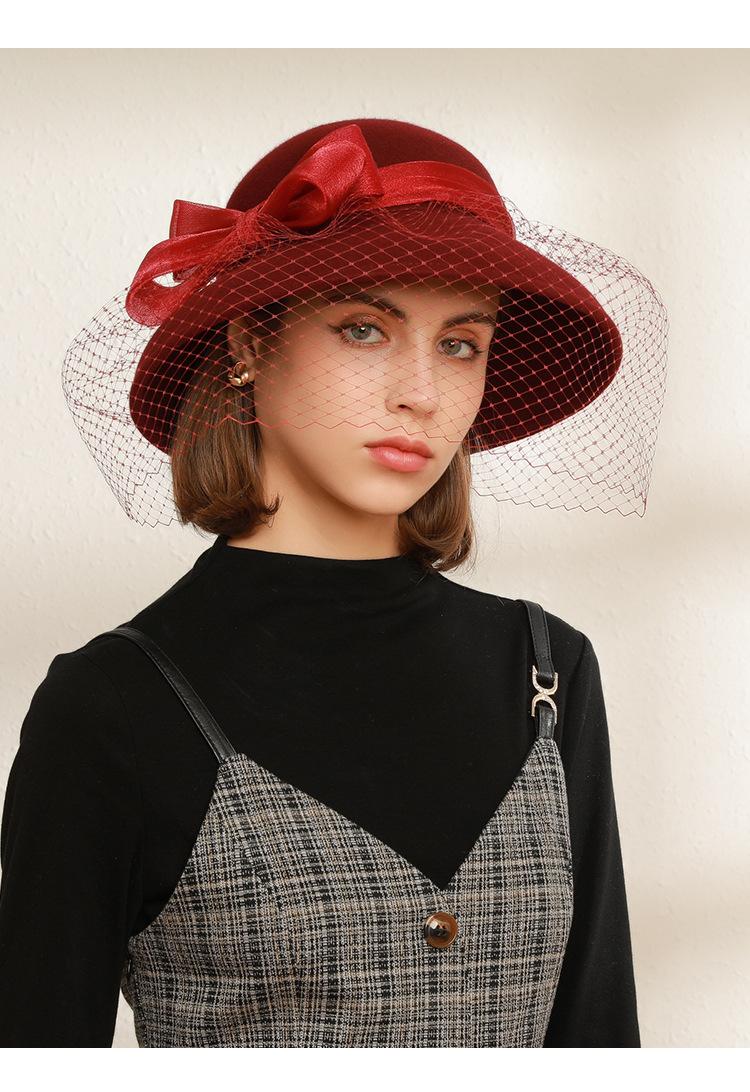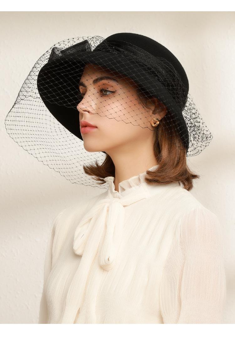 Sombrero de lavabo de lana Rongmei para otoño e invierno, estilo europeo y americano, estilo retro, con lazo francés y malla de pescador.
