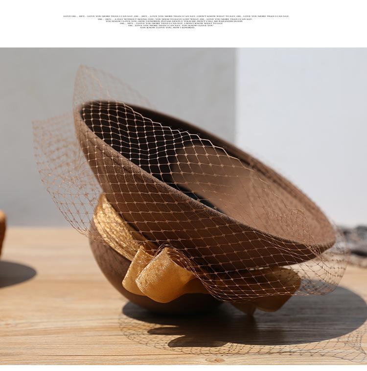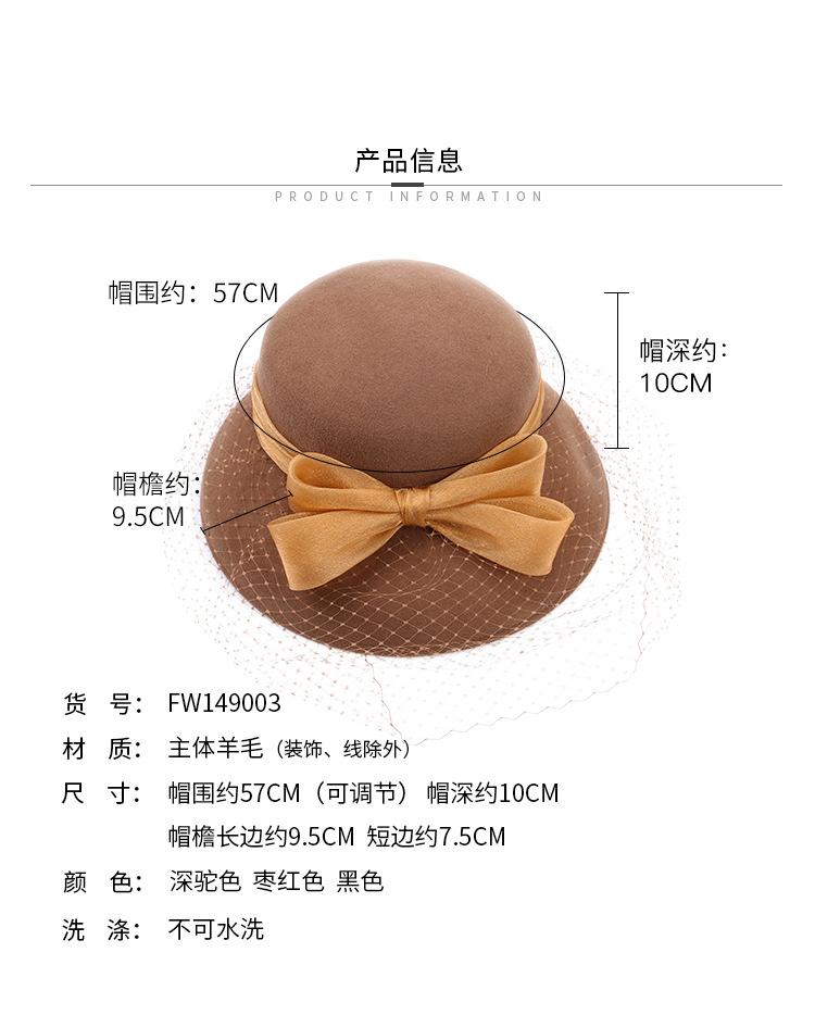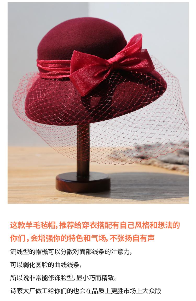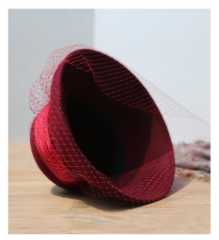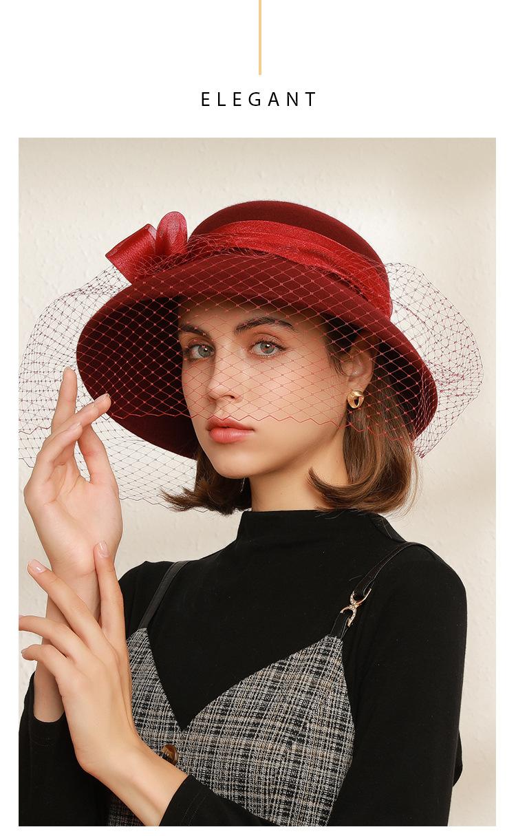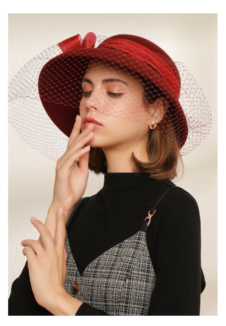 Sombrero de lavabo de lana Rongmei para otoño e invierno, estilo europeo y americano, estilo retro, con lazo francés y malla de pescador.