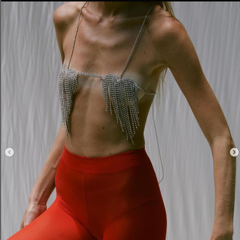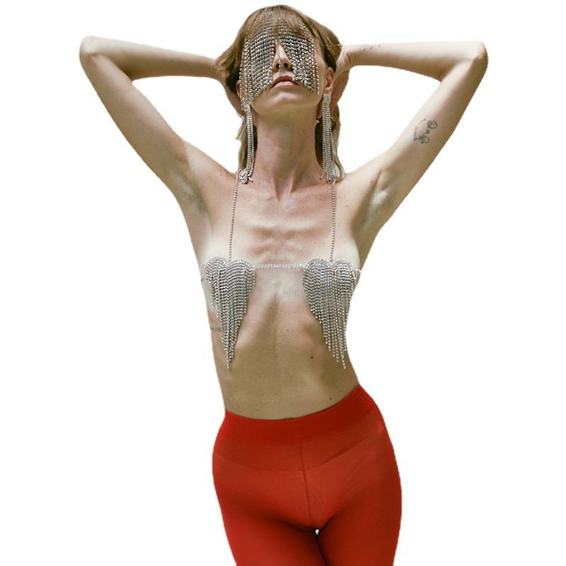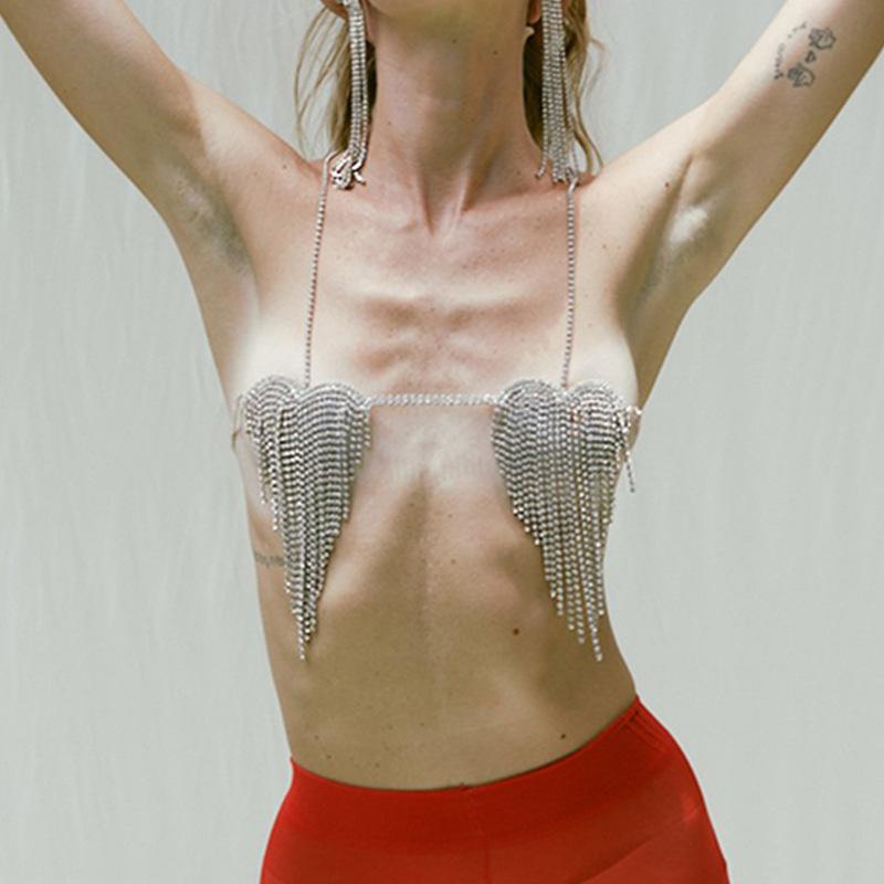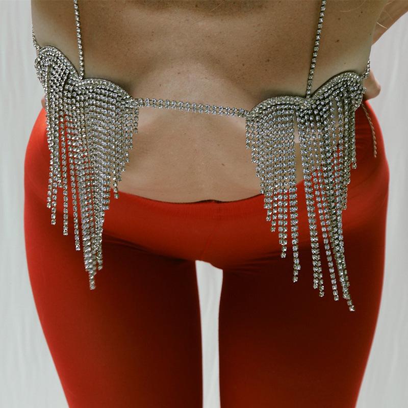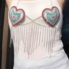 Cadena corporal con borlas de amor para mujer, sujetador sexy a la moda, joyería, cadena corporal con diamantes de imitación para discoteca Super Flash