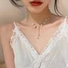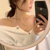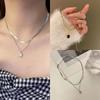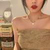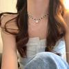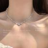 Diamond double-layer love necklace, Heart zircon, Geometric love, Flash Diamond small flower, Several pearl ne...