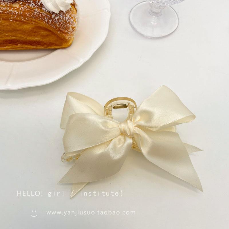 Champagne Bow Grab Clip, Transparent Pink Peach Clamp, White transparent peach grip, Green Camellia Grab Clip