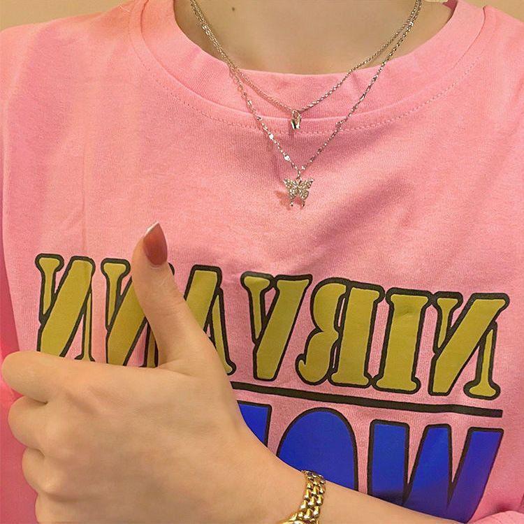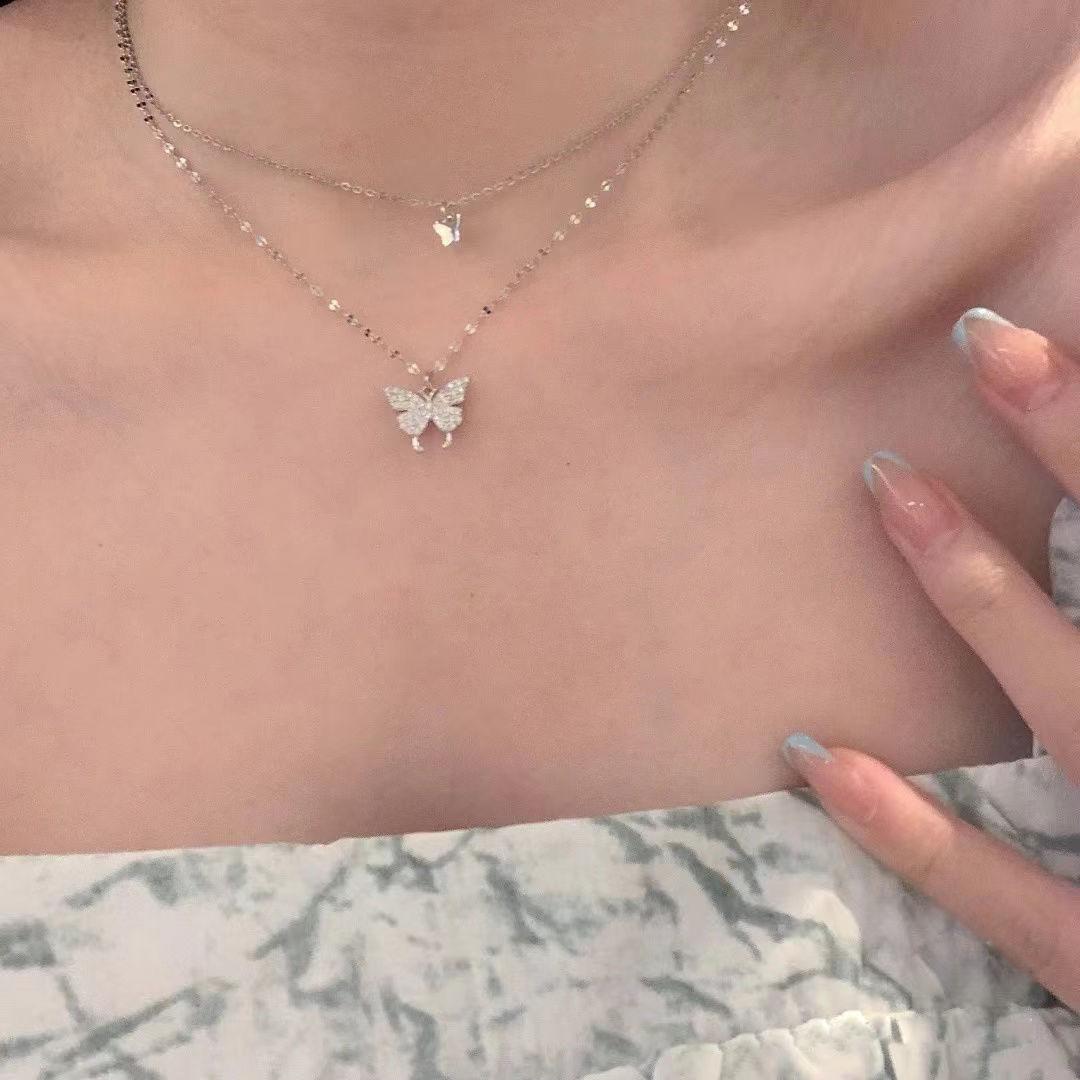 Nuevo colgante de mariposa de doble capa con diamantes brillantes, cadena de clavícula para mujer, collar de lujo ligero y combinable con todo, diseño de moda.