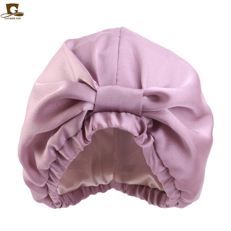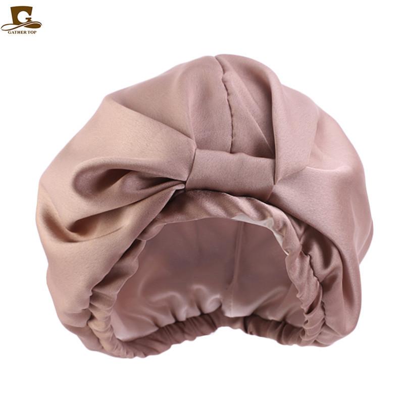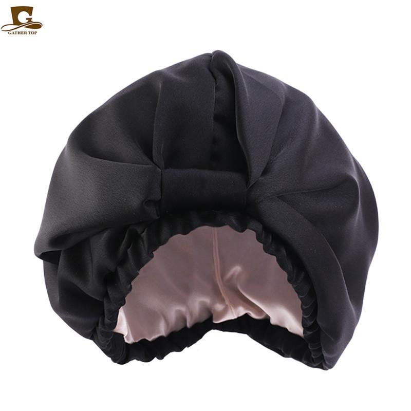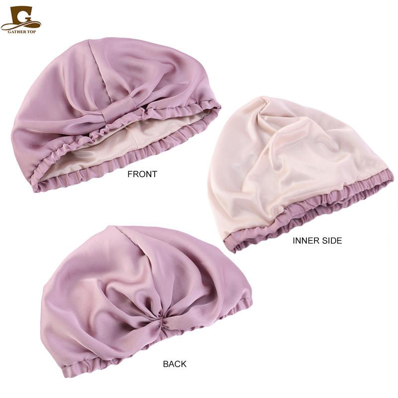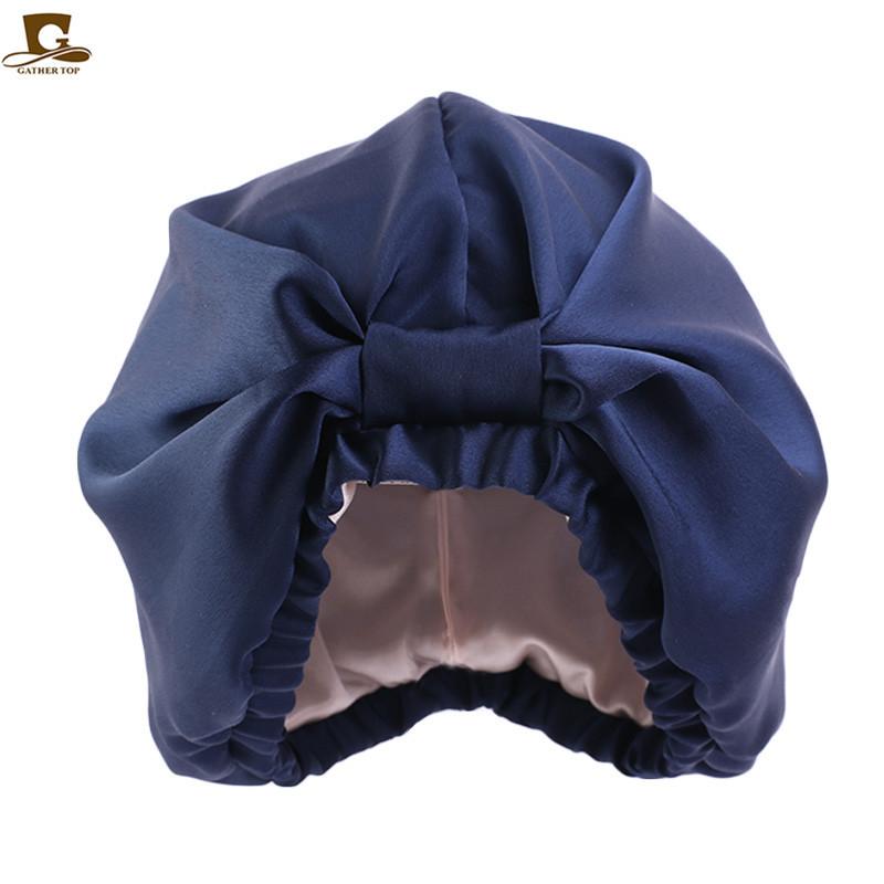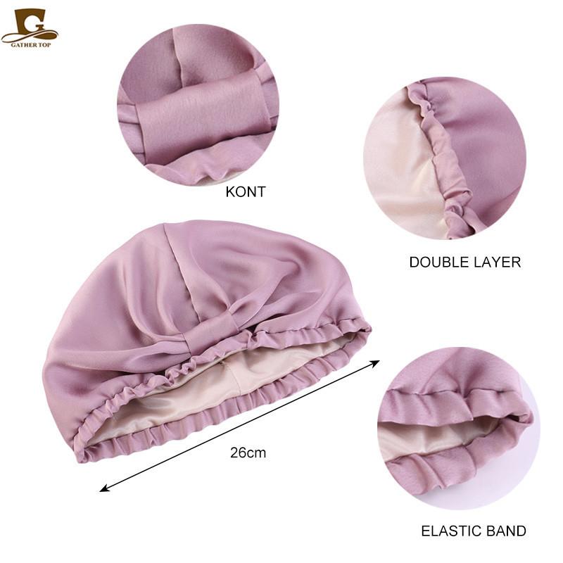 Gorro de dormir de doble capa de seda simulada, gorro pañuelo anudado, gorro de confinamiento, gorro para el cuidado del cabello, gorro de seda para el hogar TJM-433B