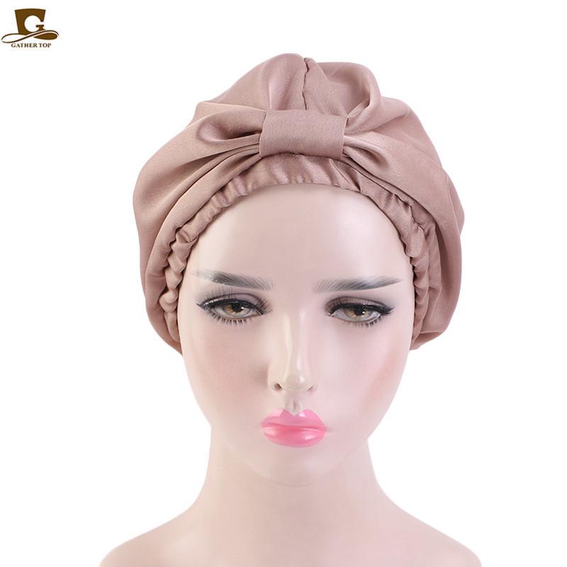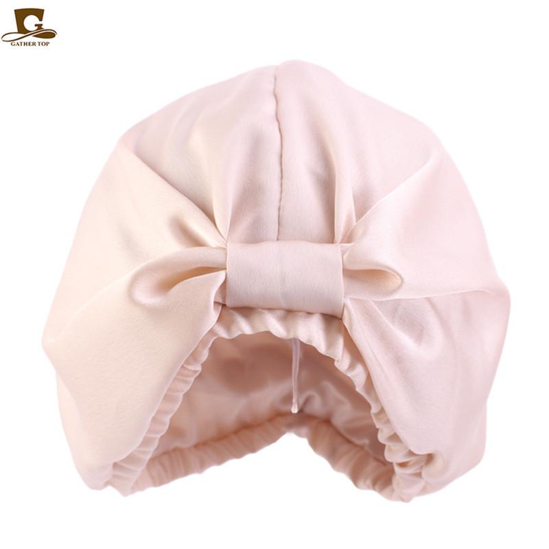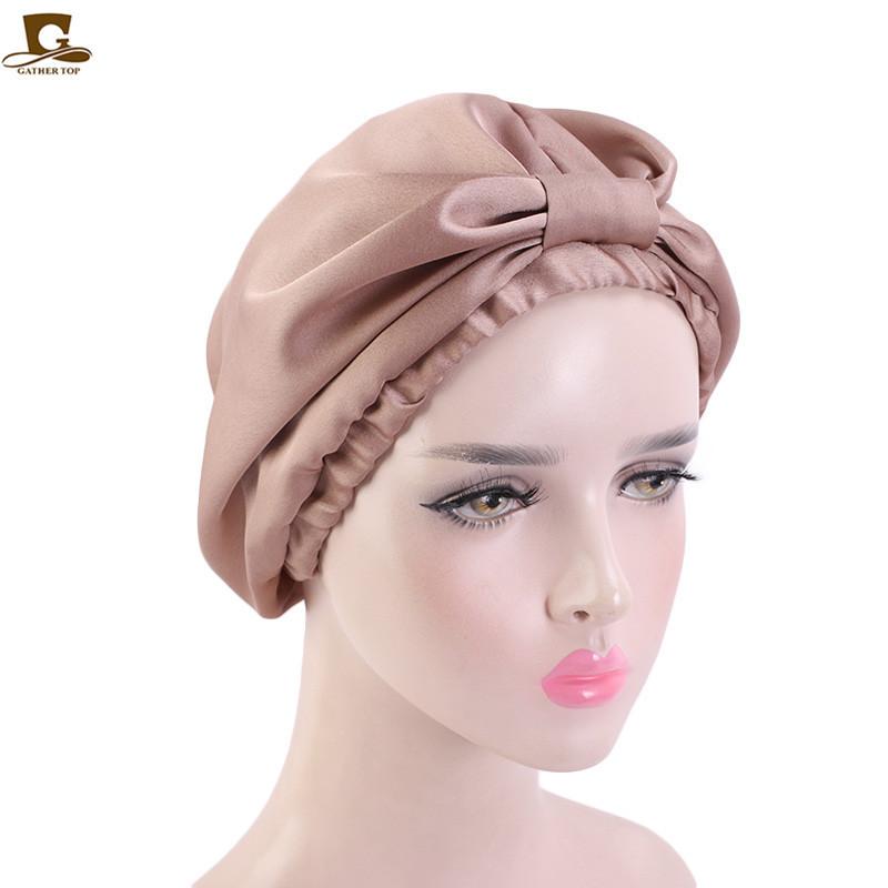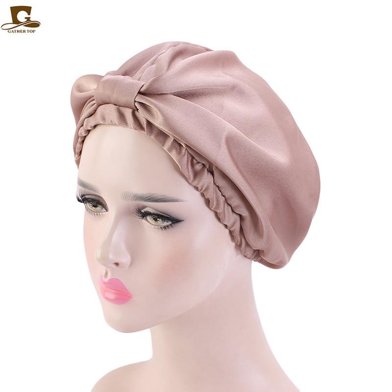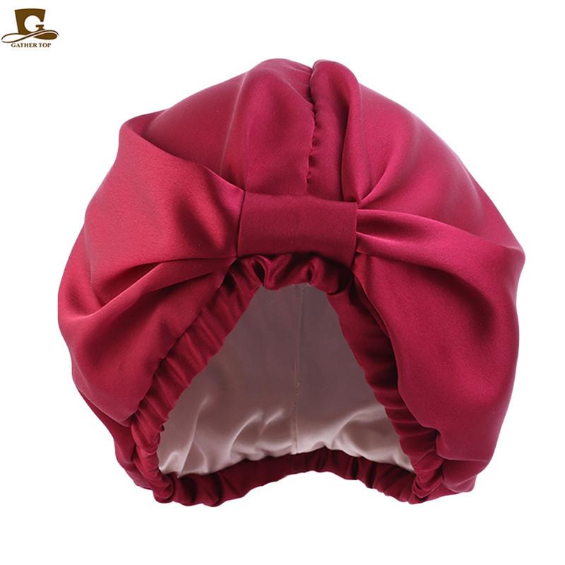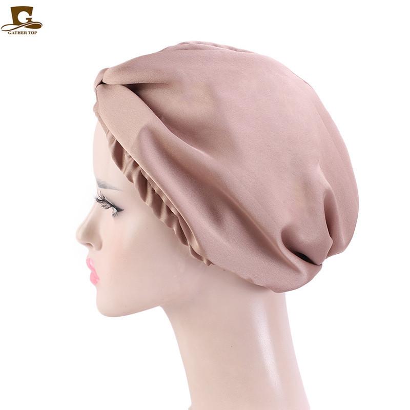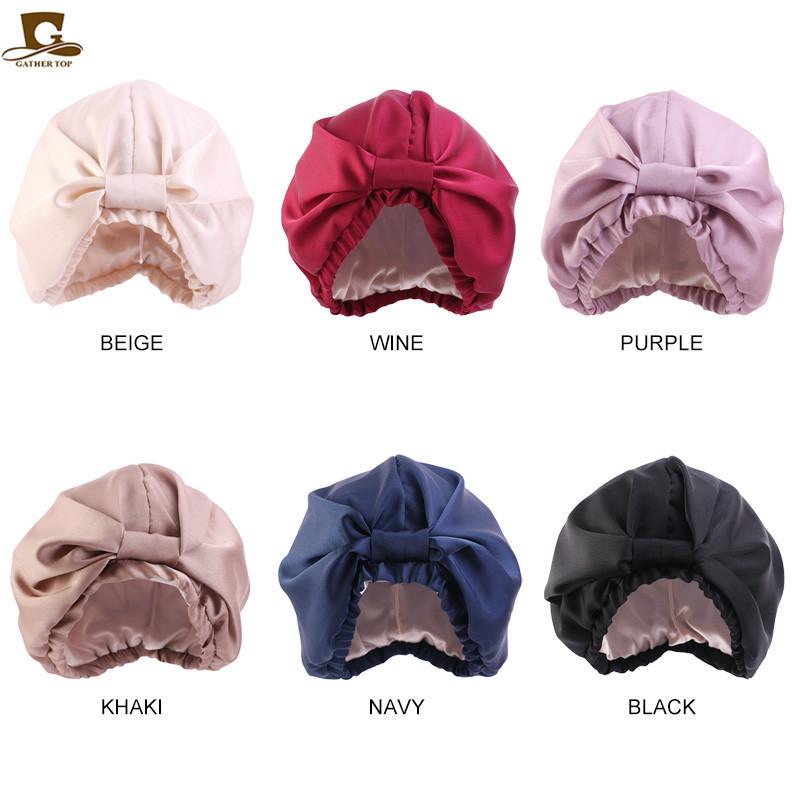 Gorro de noche de doble capa de seda artificial, gorro anudado tipo pañuelo para la cabeza, gorro de confinamiento, gorro para el cuidado del cabello, gorro de seda para el hogar