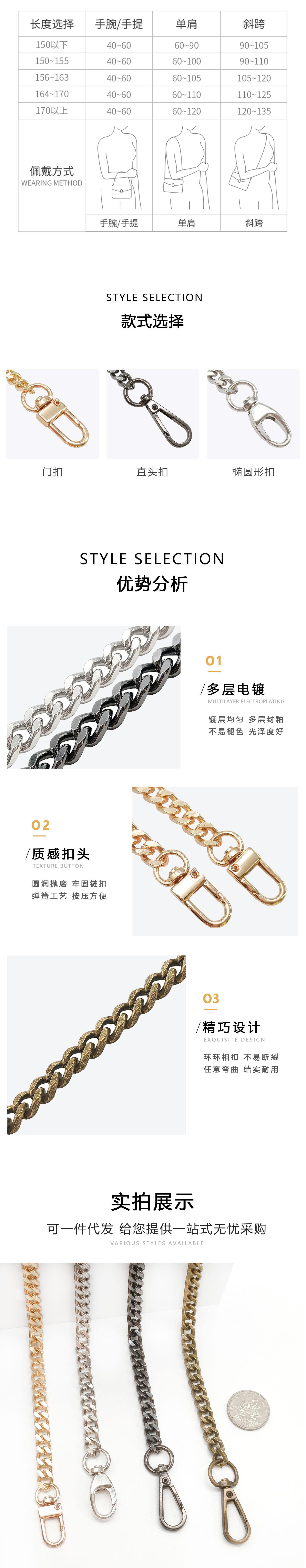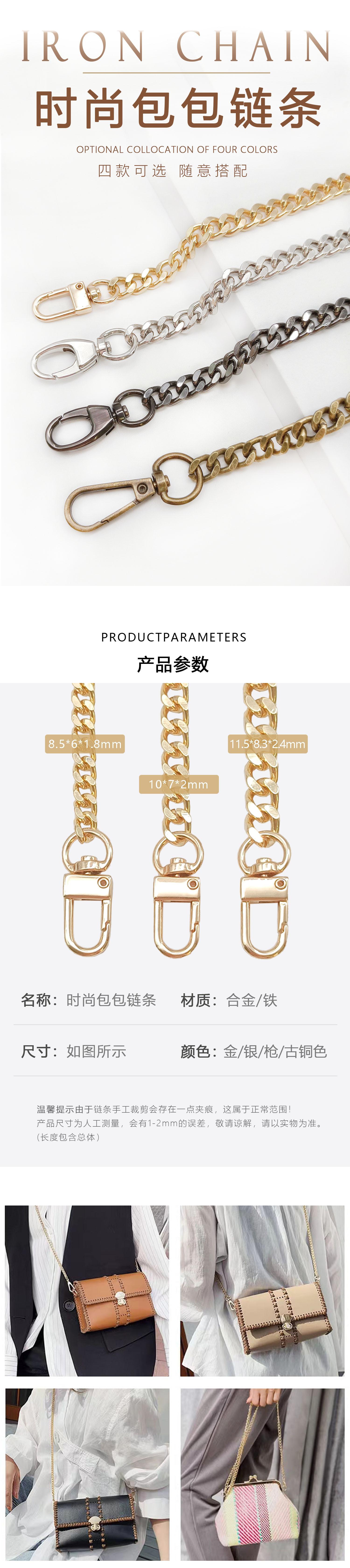 Cadena de bolso de cadena plana de alta calidad, cadena de bolso de hierro de metal, correa diagonal de un solo hombro, accesorios de cadena de bolso de molienda de cuatro lados