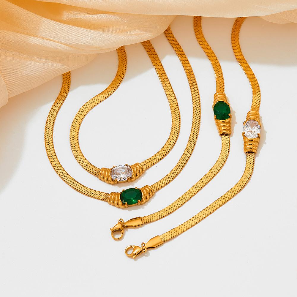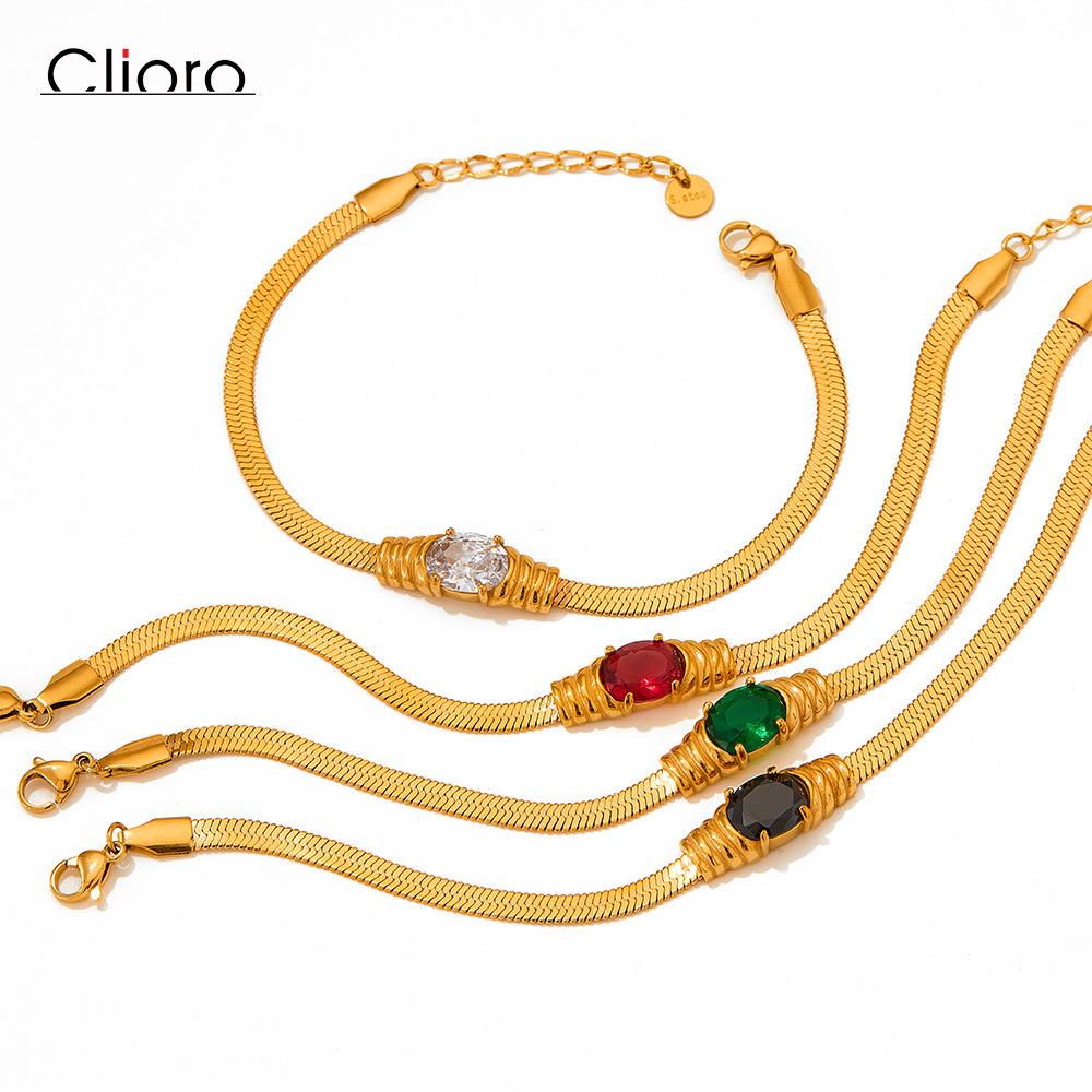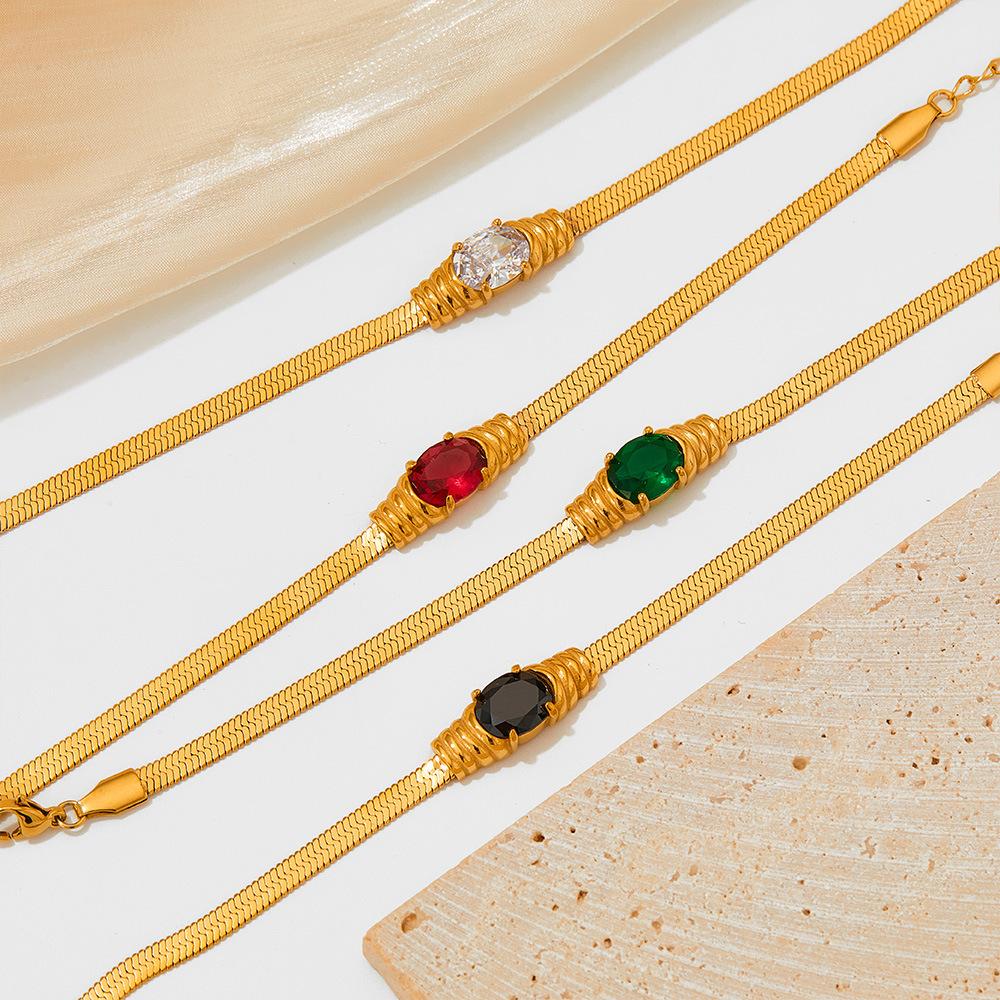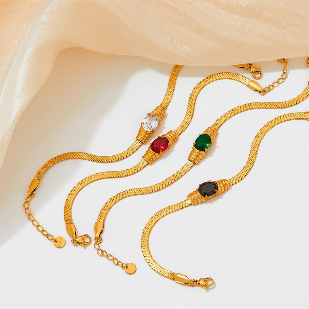 Pulsera de acero de titanio de Dongguan joyería al por mayor moda transfronteriza cadena de serpiente plana piedra de vidrio colorida pulsera de acero inoxidable pulsera para mujer