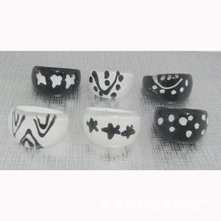 | Anillo de plástico con estampado blanco y negro anillo de plástico anillo de moda anillo de joyería | |