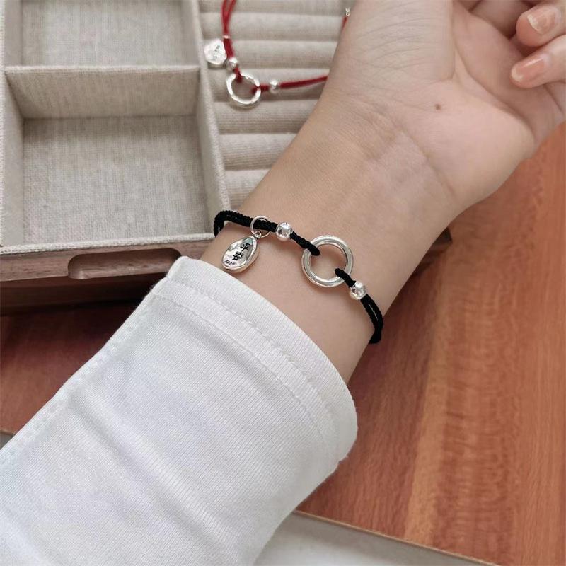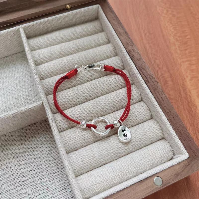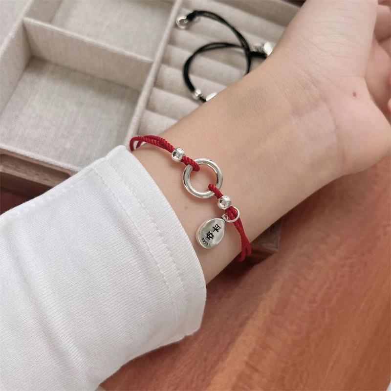 Pulsera de Pareja Ping An Joy Hebilla Ping An Benmingnian Cuerda de Mano para Hombre y Mujer Moda Versátil Diseño Nicho Pulsera