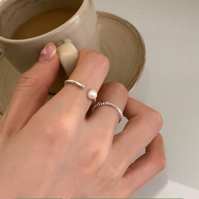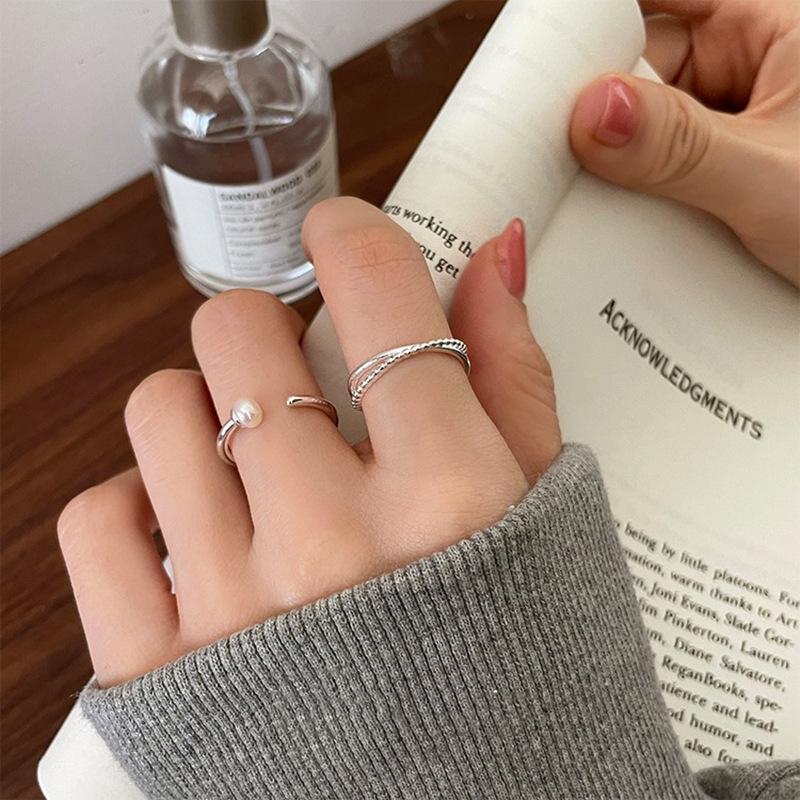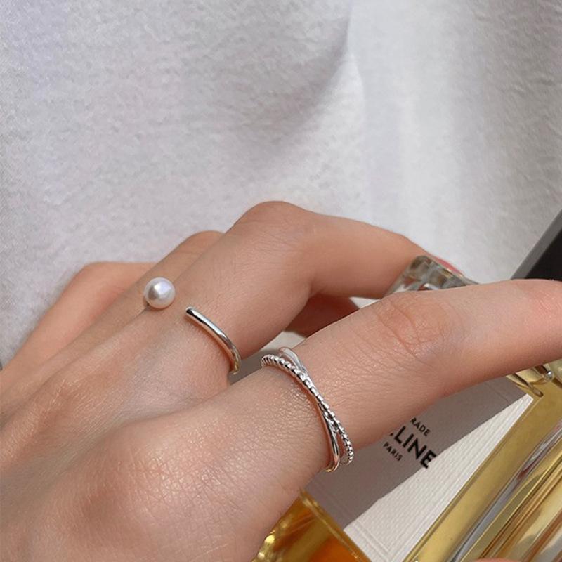 Anillo de perla fina estilo coreano, anillo cruzado, personalidad femenina, diseño de nicho, anillo simple de alto sentido, nueva moda