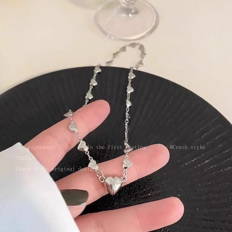 Collar con colgante de metal con diseño magnético de amor para niña, cadena para el cuello que combina con todo, diseño de cadena de clavícula de nicho.
