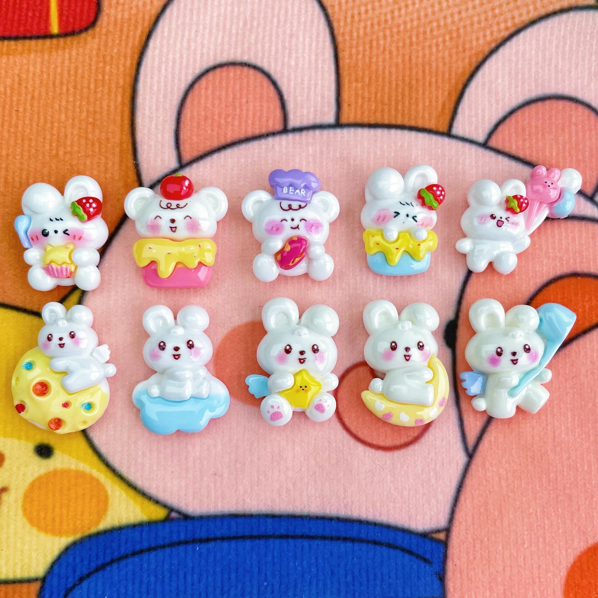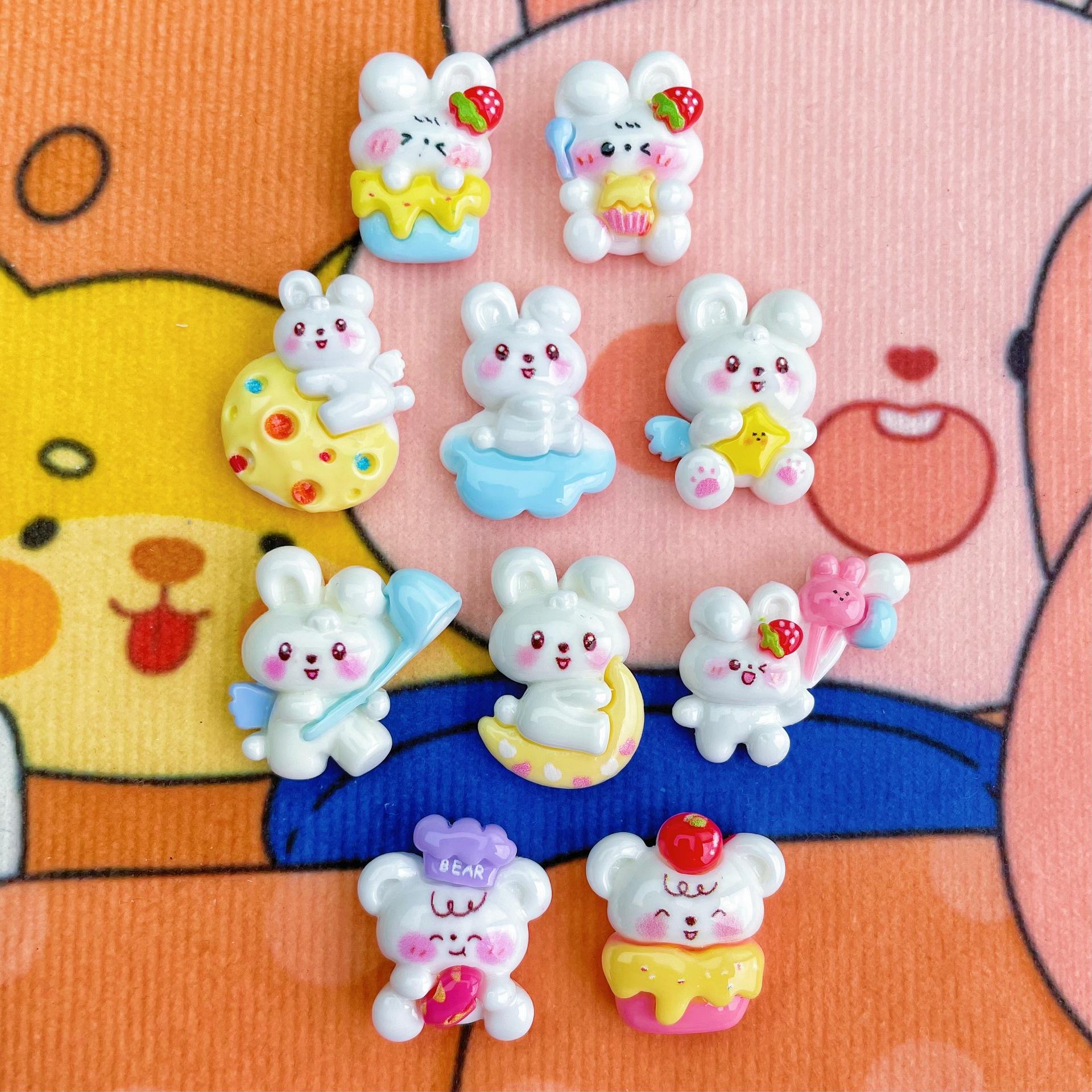 Conejo de luna y estrella brillante, conejo de luna, oso de postre, accesorios de resina, horquilla, funda para teléfono móvil, estuche de papelería, lápiz, accesorios de decoración