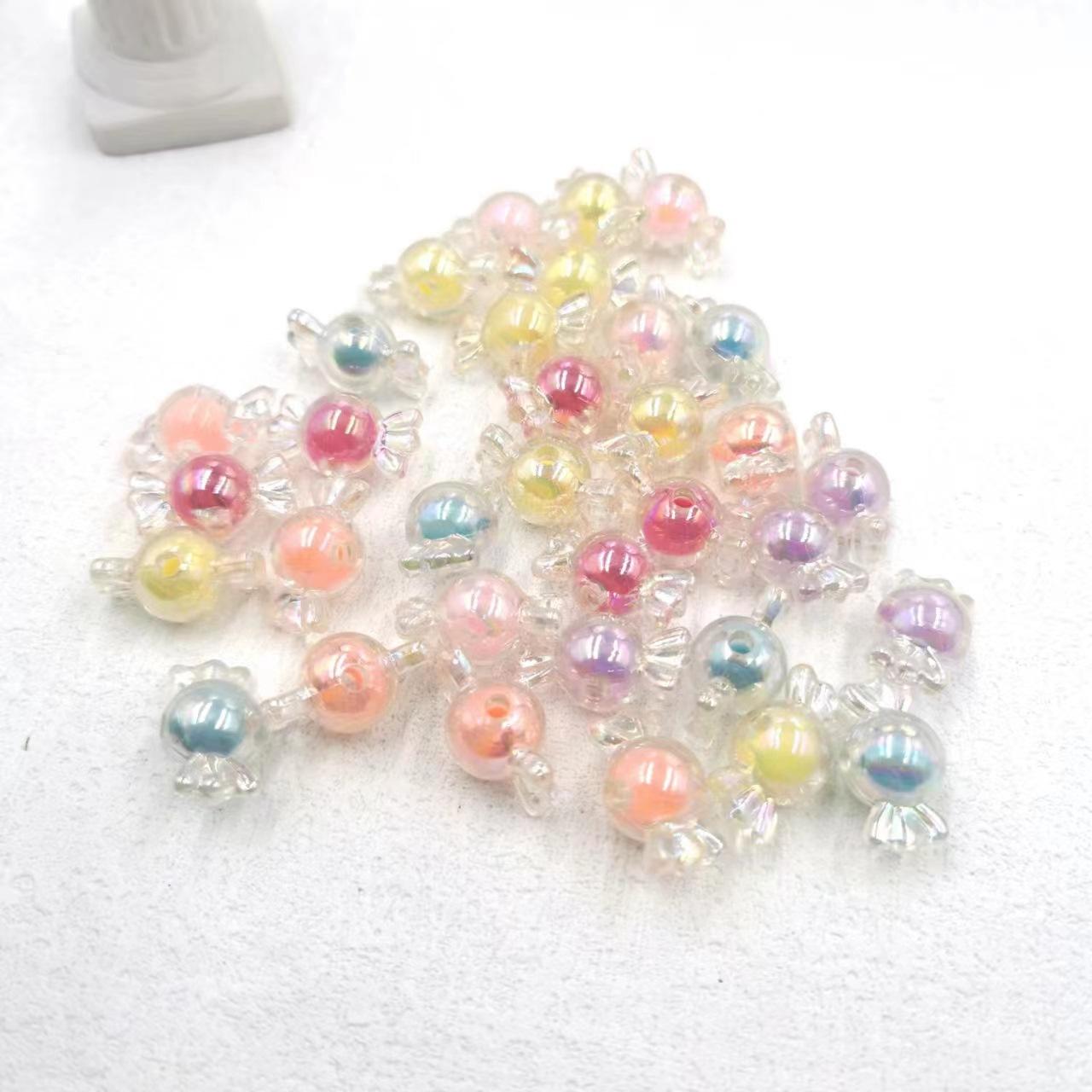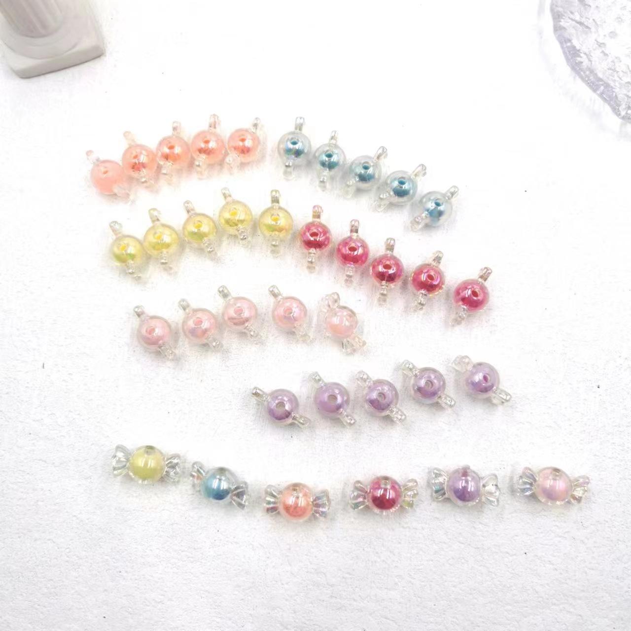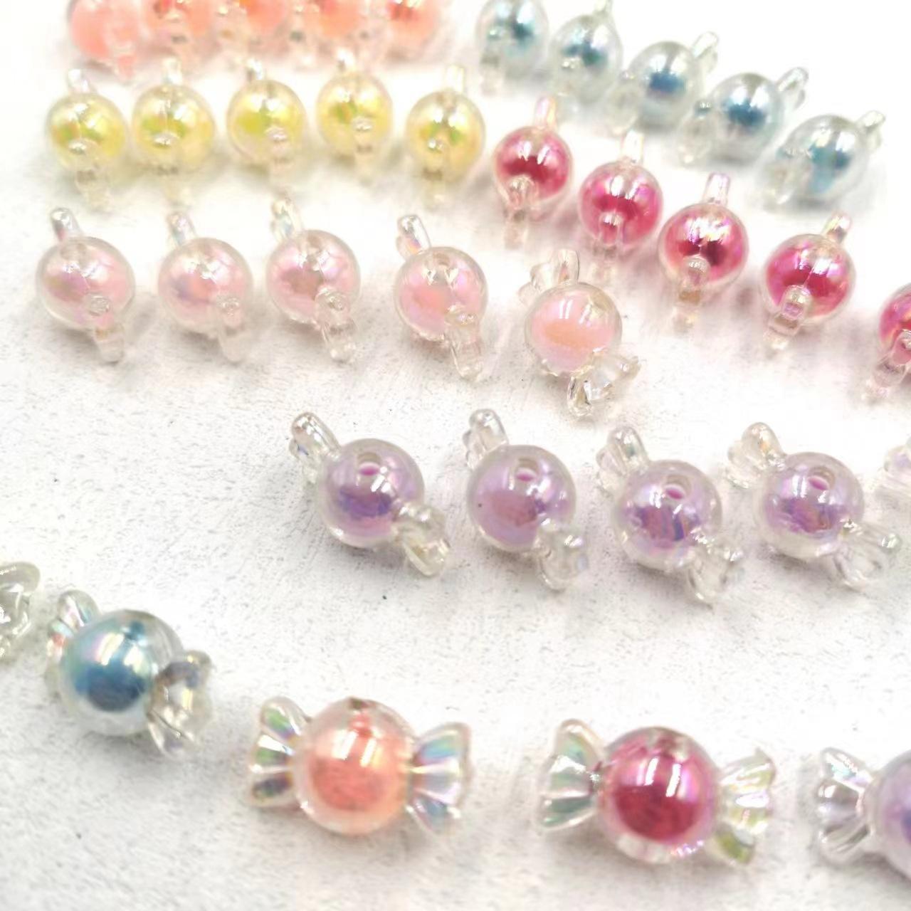 Pulsera acrílica DIY con cuentas de macarrón, color interior, caramelo, cuentas sueltas, agujero recto, cuentas de plástico chapadas 3.0
