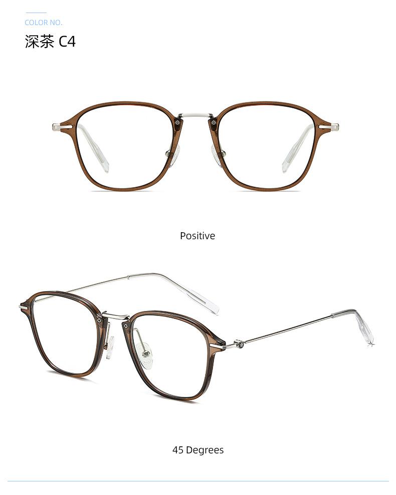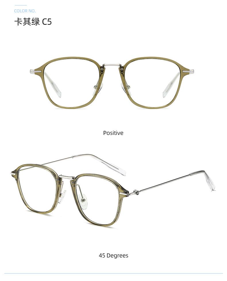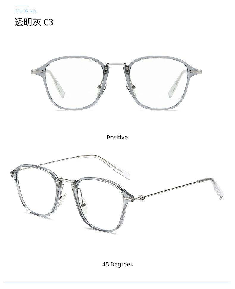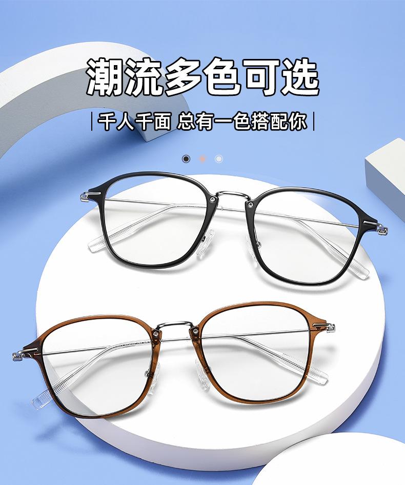 Gafas de moda sin maquillaje TR90 con montura azul para hombre, lentes planas de metal a prueba de luz, gafas casuales versátiles de montura completa para miopía para mujer