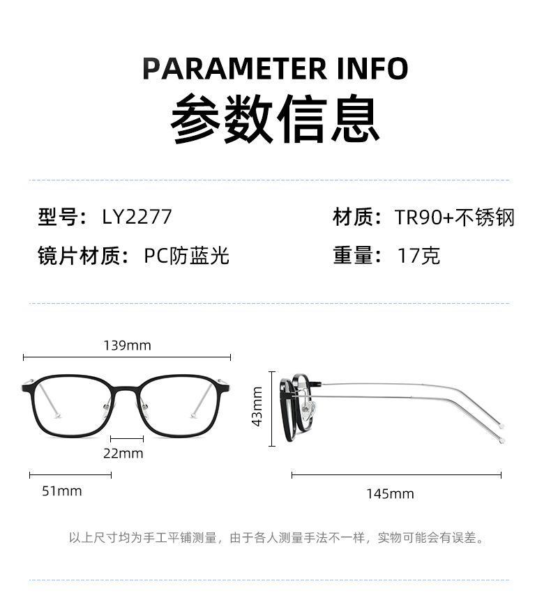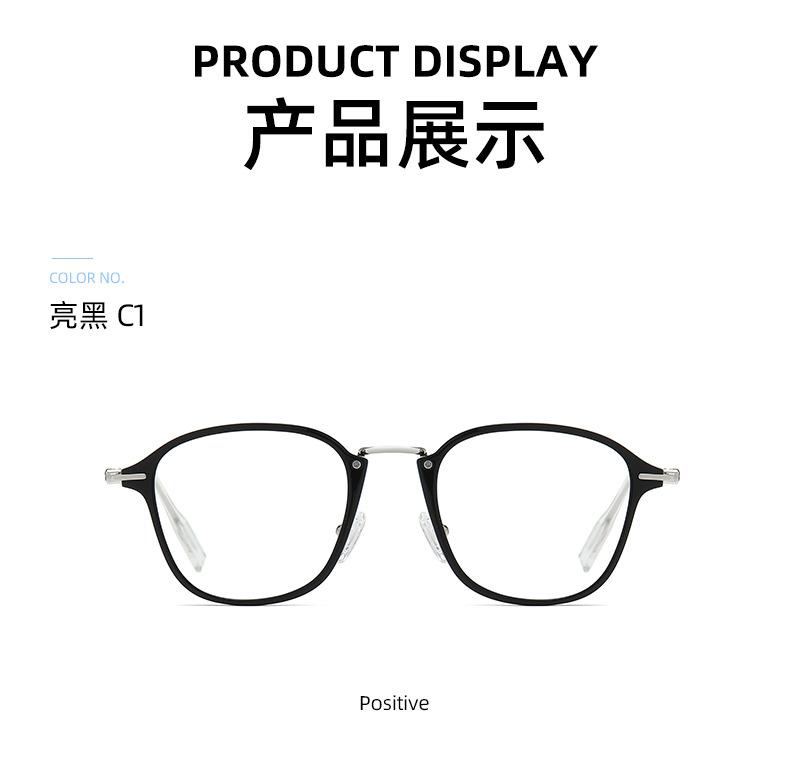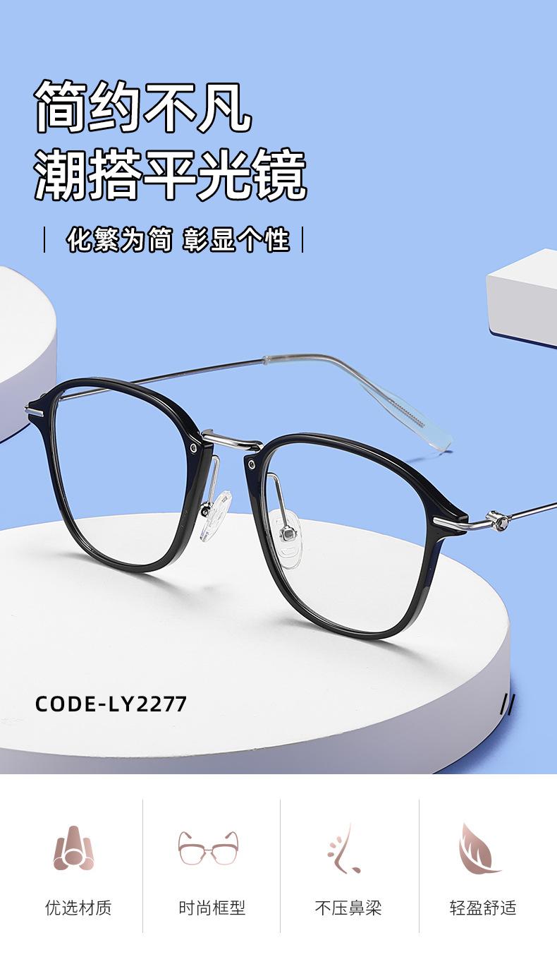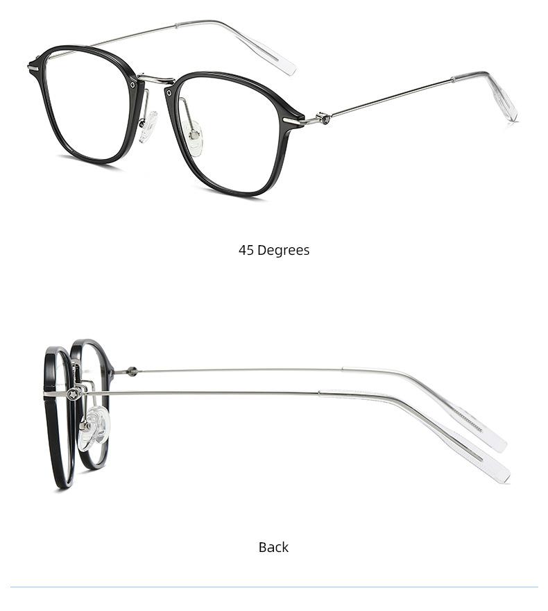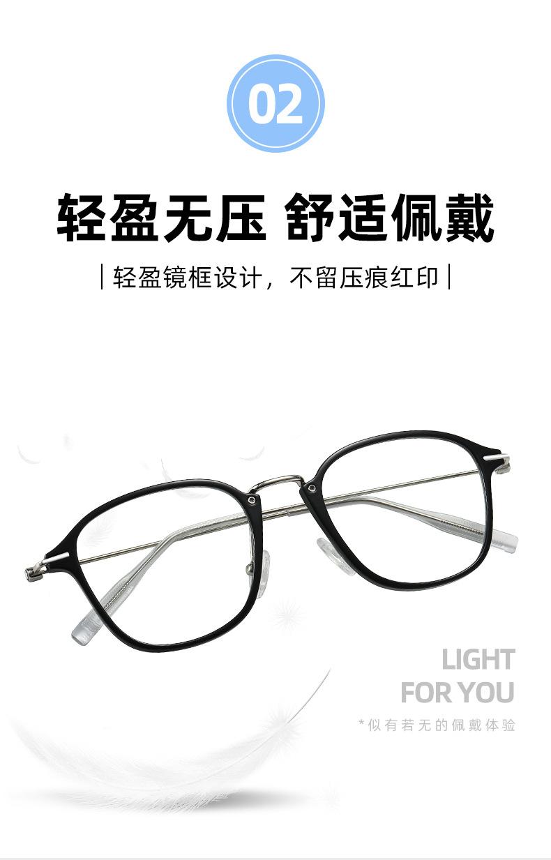 Gafas de moda sin maquillaje TR90 con montura azul para hombre, lentes planas de metal a prueba de luz, gafas casuales versátiles de montura completa para miopía para mujer