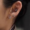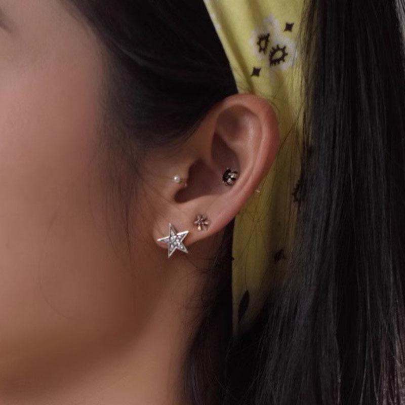 Pendientes vintage de plata de ley 925 con diseño de corona de estrella y flor de iris desgastada, pequeños y únicos, combinables, para mujer, 2024.