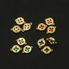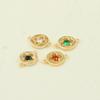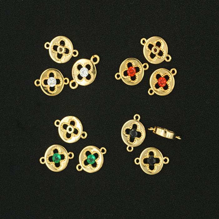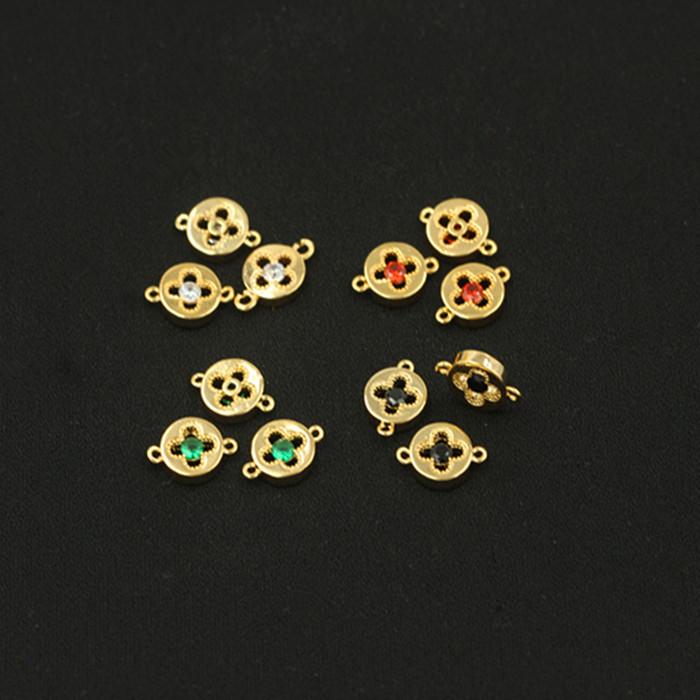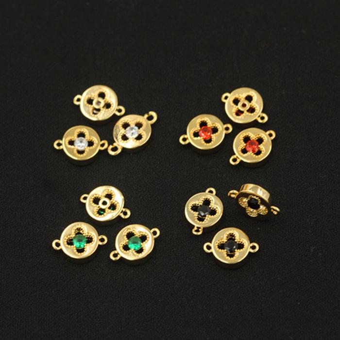 Pieza de conexión redonda con doble agujero de circonita multicolor bañada en oro auténtico y cobre, accesorio para pulsera, collar y espaciador de joyería DIY.