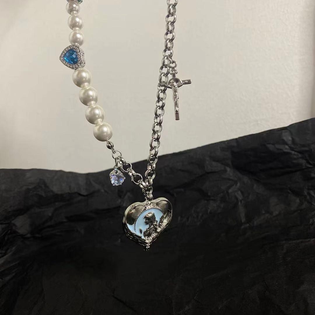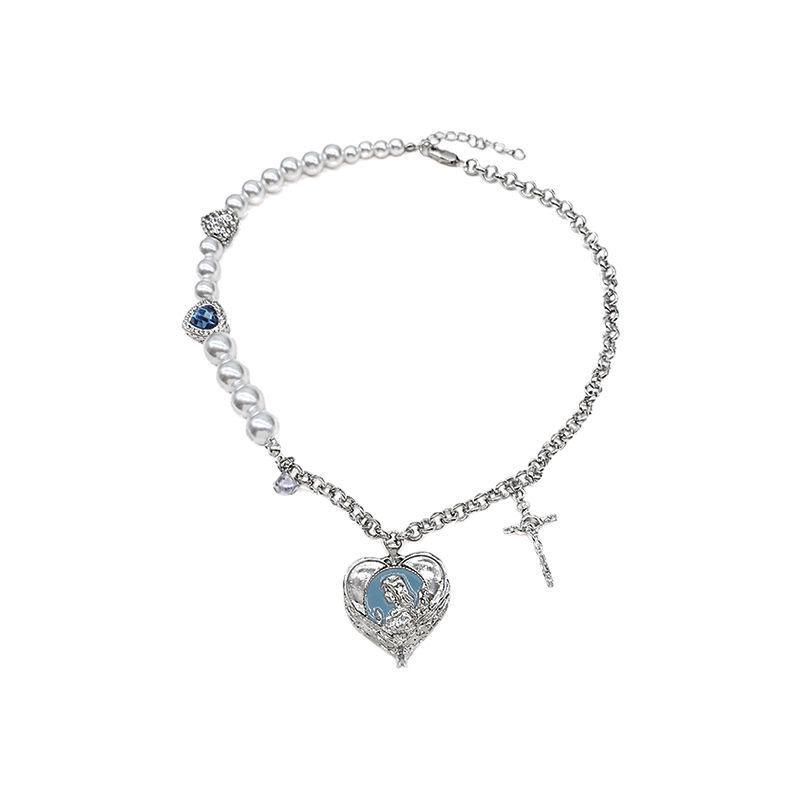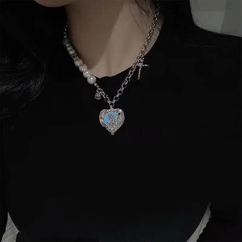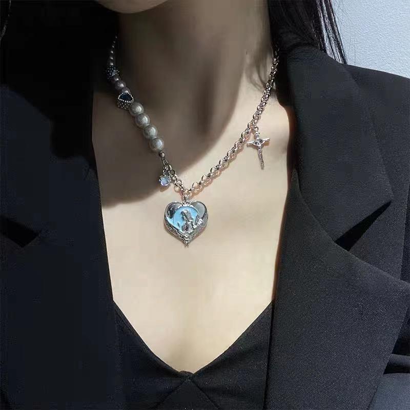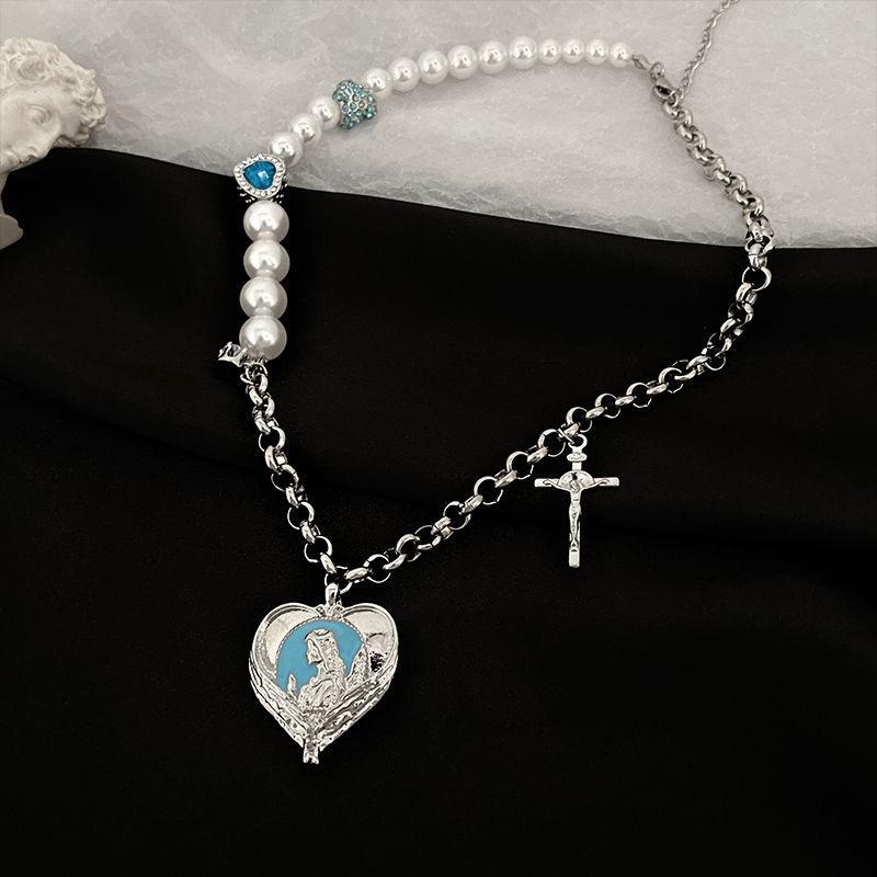 Collar de corazón virgen para mujer, diseño de nicho moderno, de alta calidad, ligero, de lujo, con personalidad, retrato, cadena de clavícula, accesorios a juego.