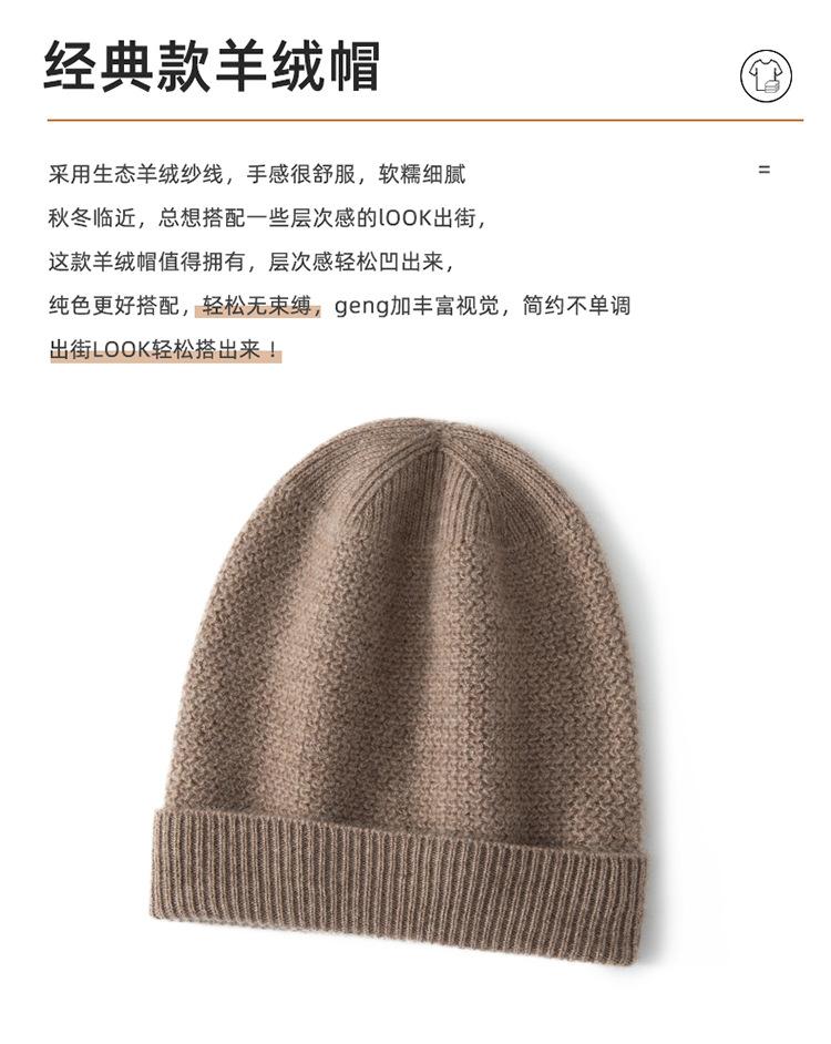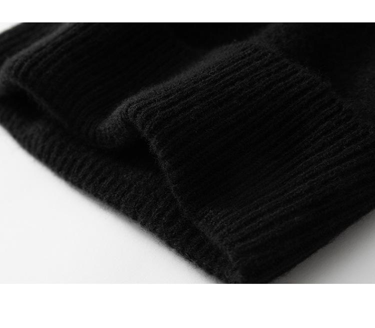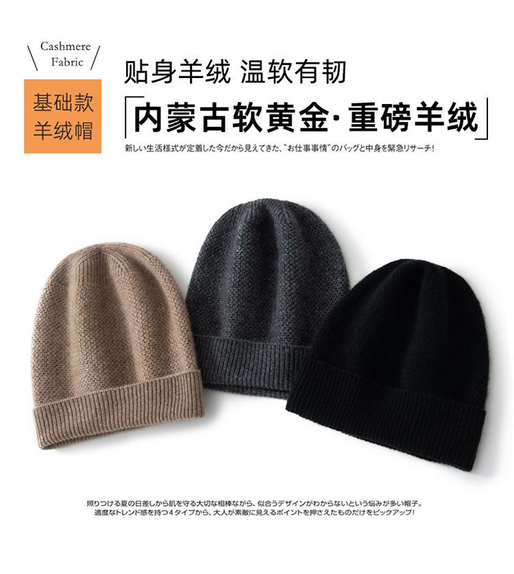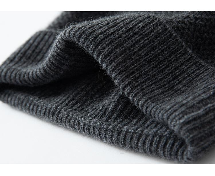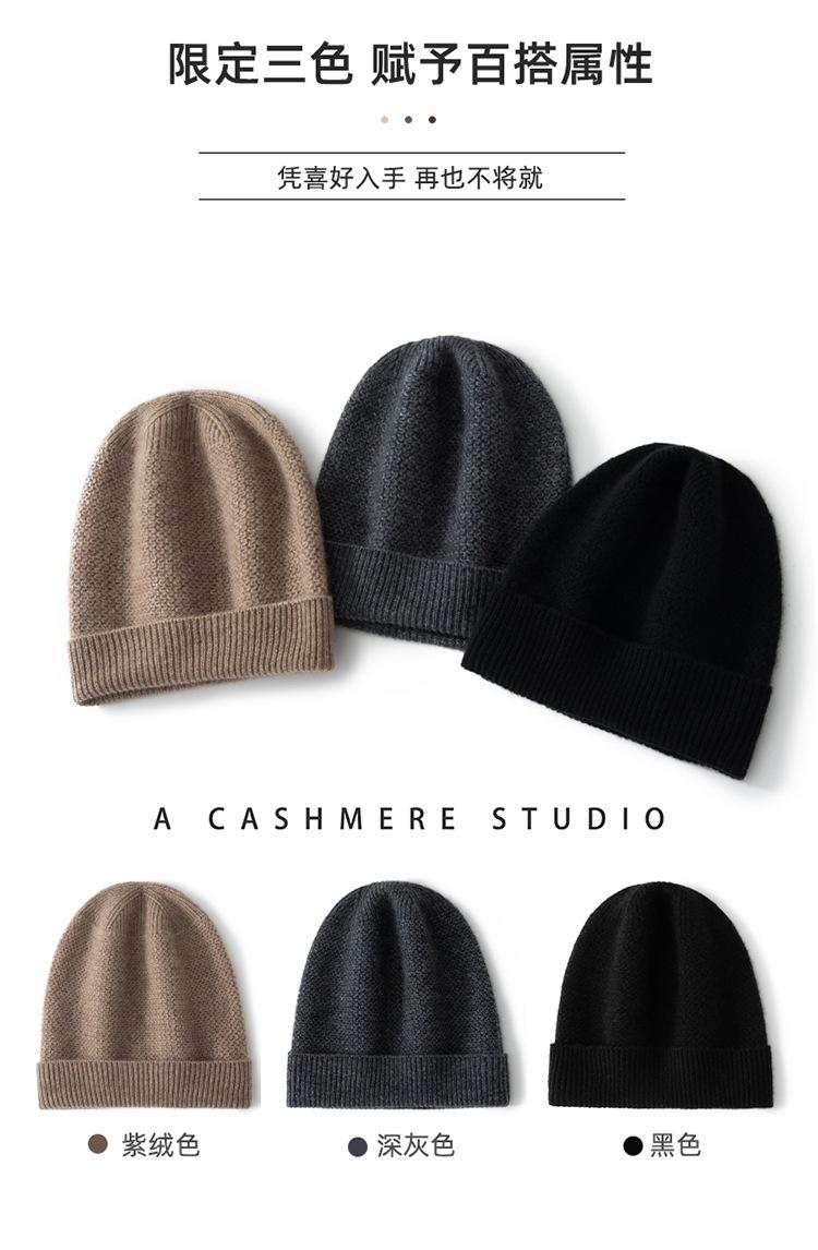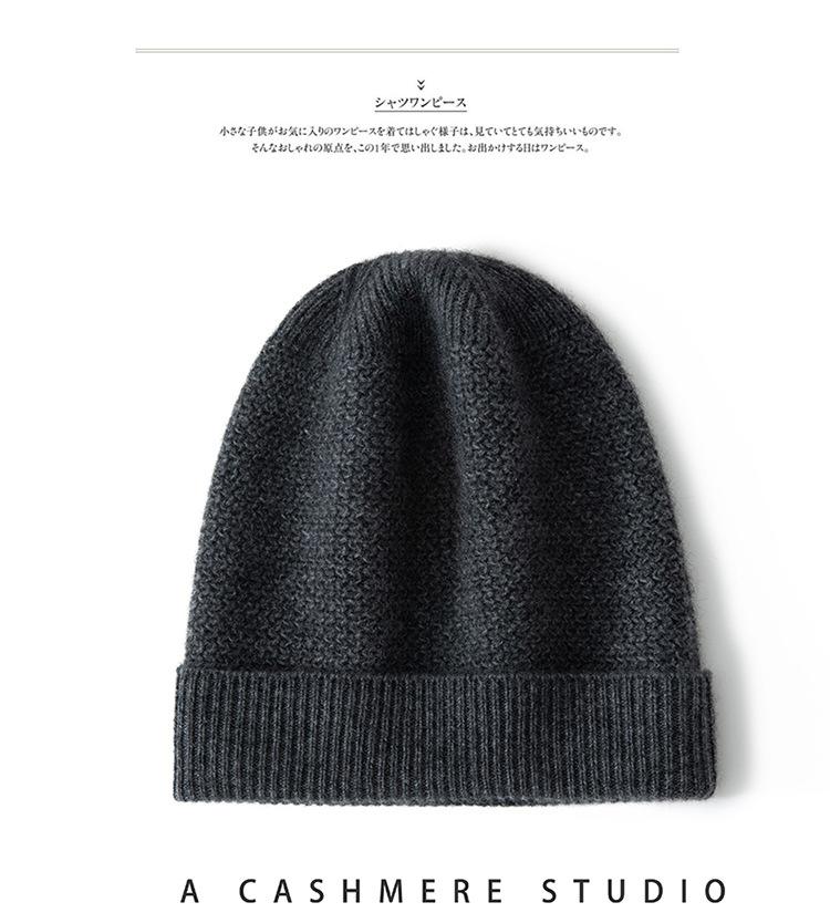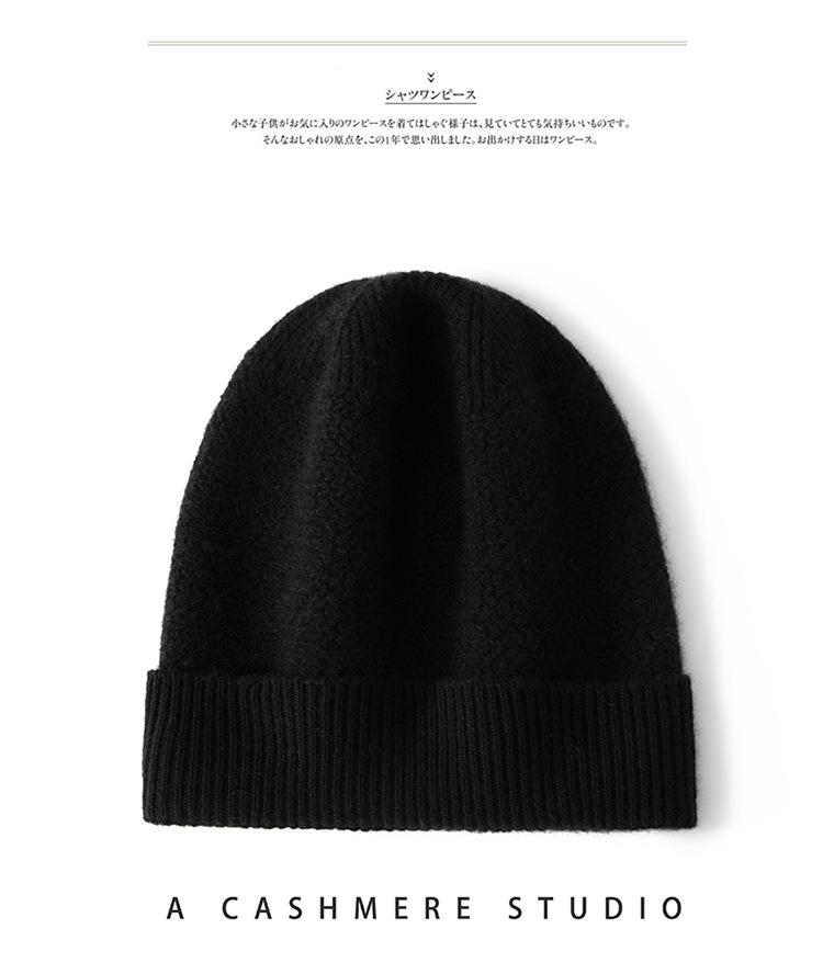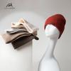 Gorro de cachemira de color liso para otoño e invierno, gorro de terciopelo grueso y cálido con vuelta para mujer, gorro de punto de lana para hombre