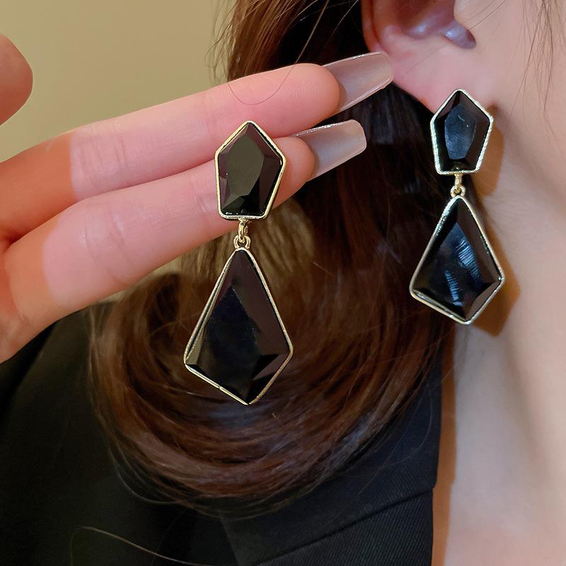 Pendientes geométricos con incrustaciones de diamantes, pendientes de alta gama, de temperamento moderno, ligeros y de lujo, elegantes y combinables, pendientes exagerados con forma de diamante.