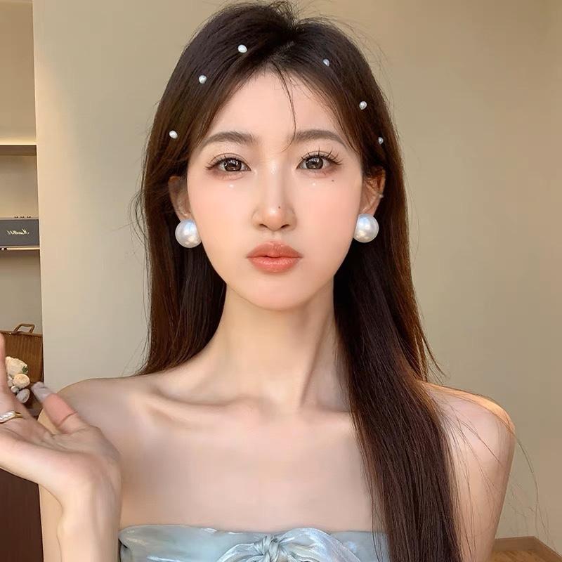 Pendientes de perlas grandes y elegantes retro para mujer, de plata S925, con aguja y sensación avanzada, con viento frío exagerado.