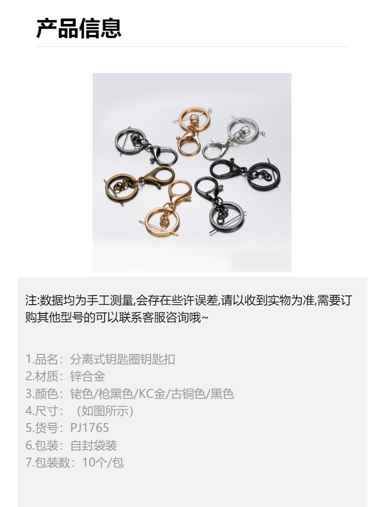 Juego de tres piezas de llavero de metal con cierre de langosta, colgante de llavero independiente, accesorios de joyería DIY