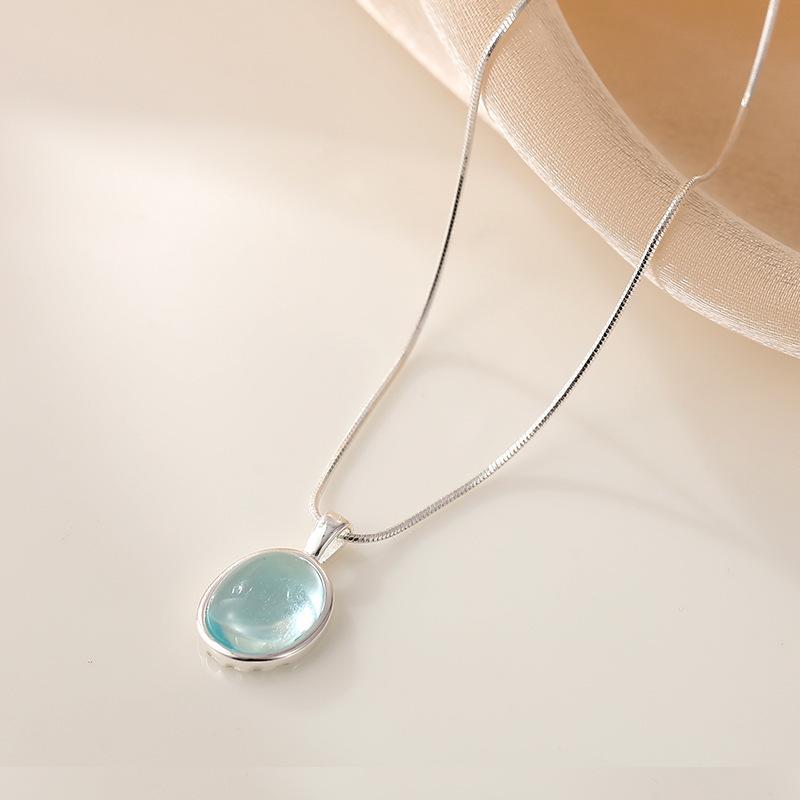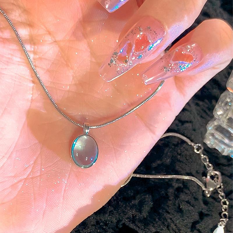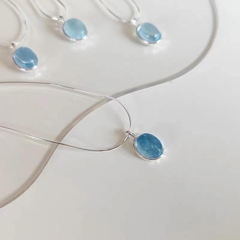 Aquamarine blue and white moonlight necklace [o-shaped chain]