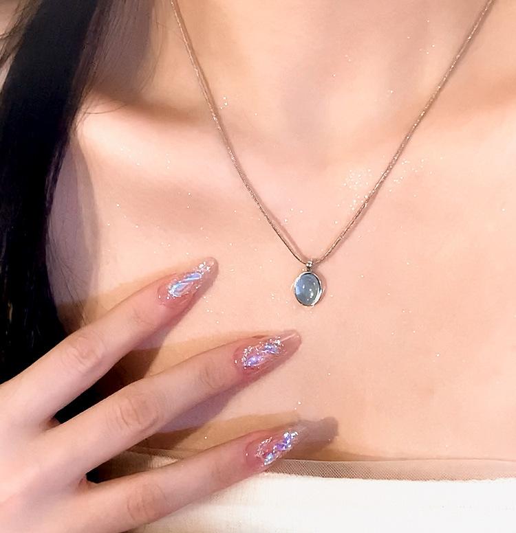 Collar de piedra lunar y aguamarina para mujer, novedad de 2024, cadena de clavícula de lujo de nicho, cadena de hueso de serpiente para mujer, accesorios de cadena de lana.