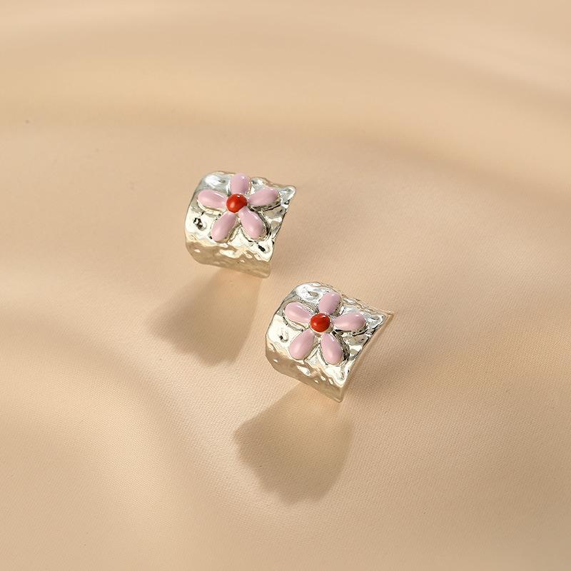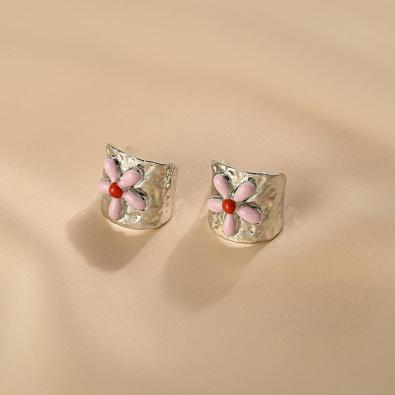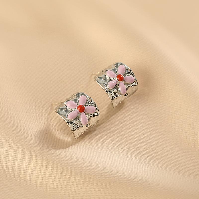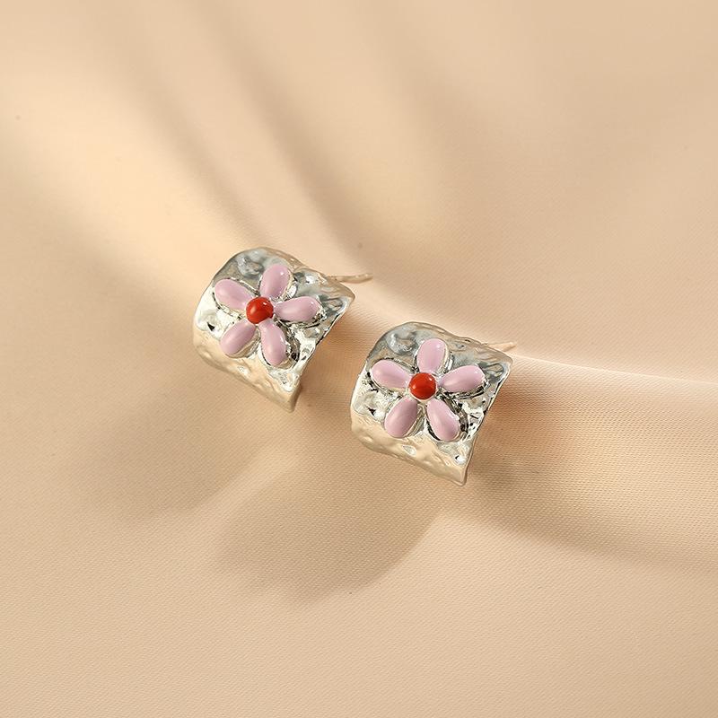Pendientes de botón de flor simple en forma de C para mujer, nuevos pendientes de primavera y verano, estilo frío, combinables con todo, pendientes cuadrados de moda que combinan con todo.
