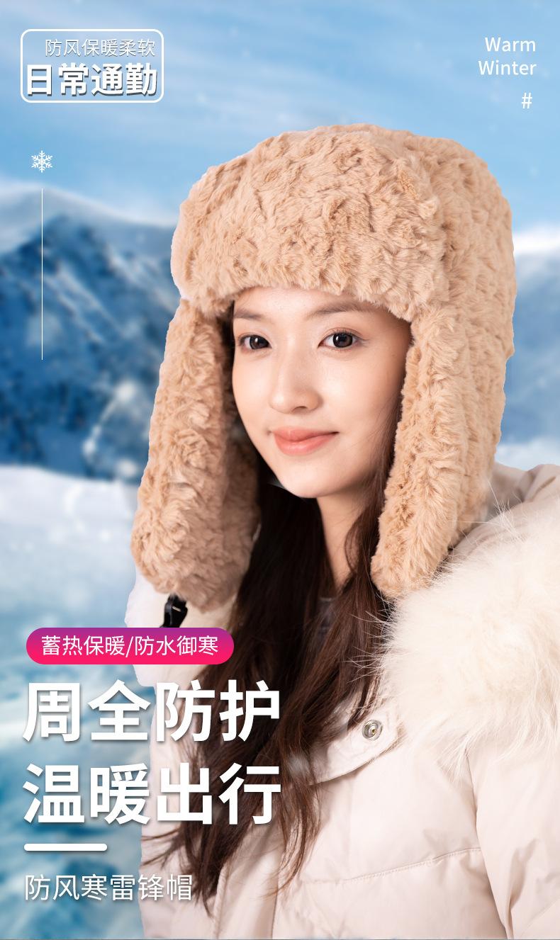 Estilo coreano nuevo otoño e invierno lindo peludo para mujer protección para las orejas que hace que la cara se vea pequeña sombrero Lei Feng cálido a prueba de frío sombrero para montar a la moda