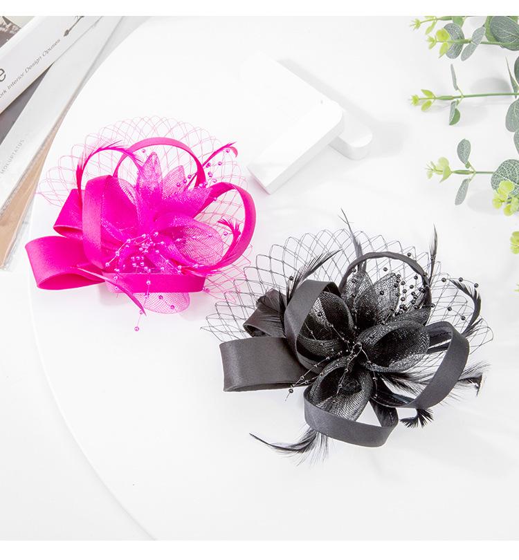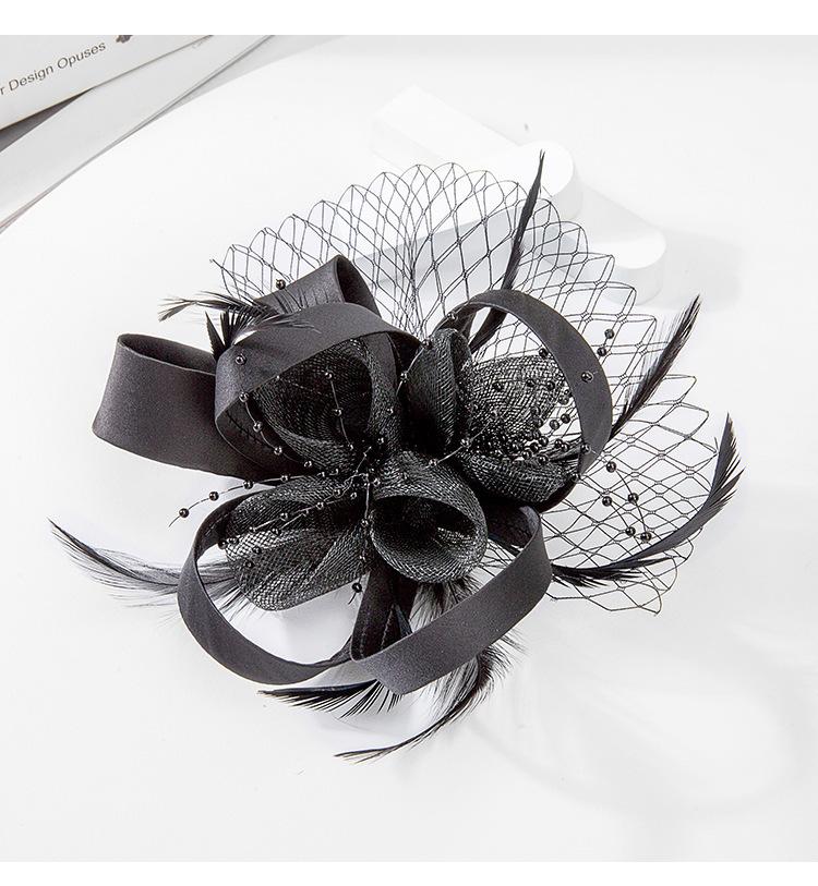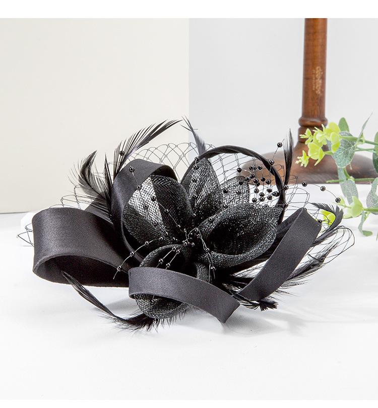 2025 Linglong Elegante Sombrero de Copa Británico Negro Malla Lino Decorativo Diadema para Vestido Formal Tocado para Banquete
