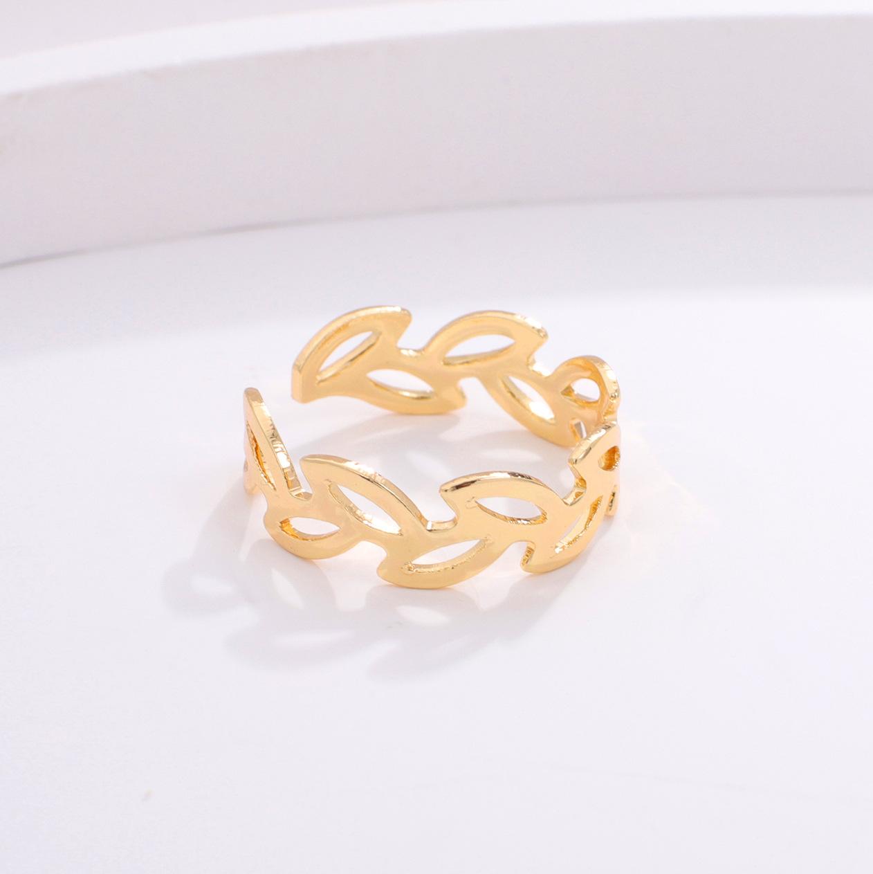 Anillo Hoja de Trigo Transfronterizo Elegante Simple Estilo Coreano Diseño Nicho Gama Alta Hueco Retro Anillo Abierto