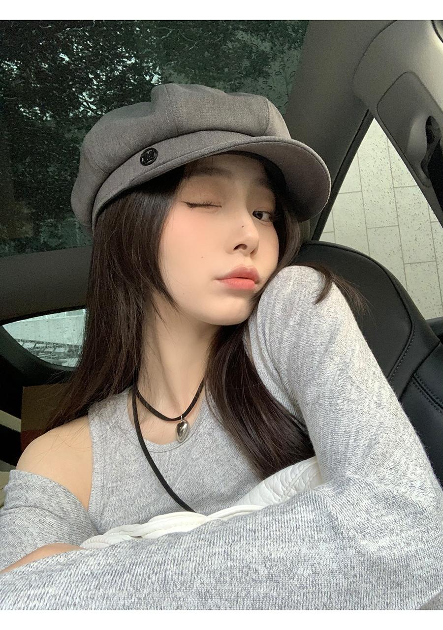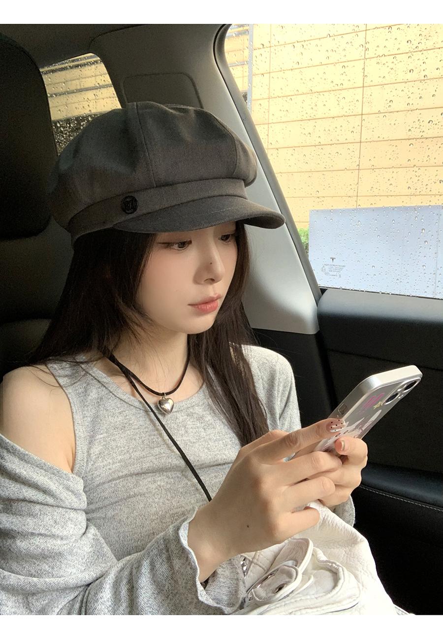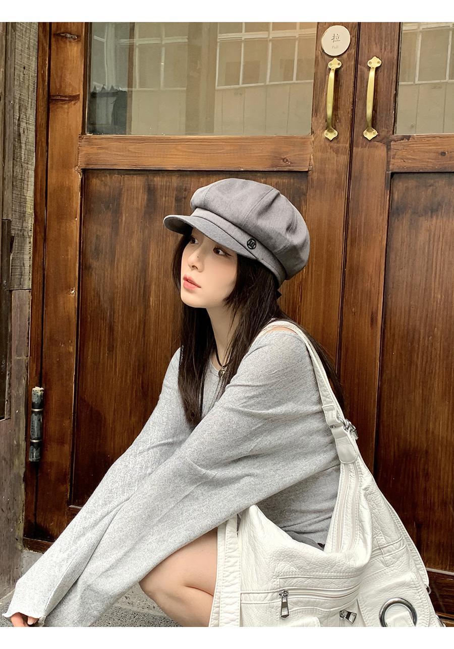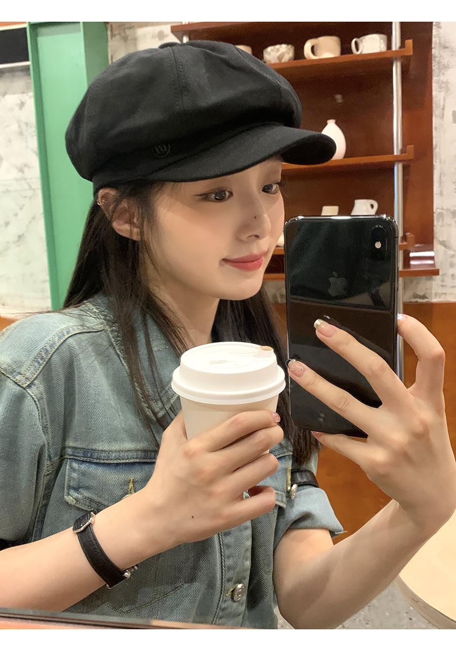 Boina negra informal para mujer, estilo octogonal, estilo retro británico, con aspecto de cara pequeña, para otoño e invierno, ideal para pintor y vendedor de periódicos.