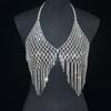 Sujetador con borlas de malla sexy para mujer, cadena corporal con diamantes de imitación, estilo europeo y americano