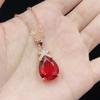 Collar de Moda para Mujer con Colgante Elegante de Turmalina Roja de Simulación en Forma de Gota, Celebridad de Internet en Vivo, Súper Ventas, Nuevo, Personalidad