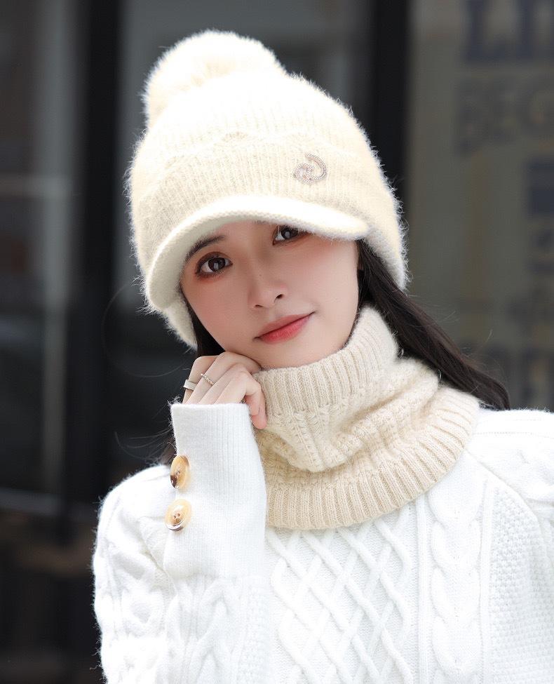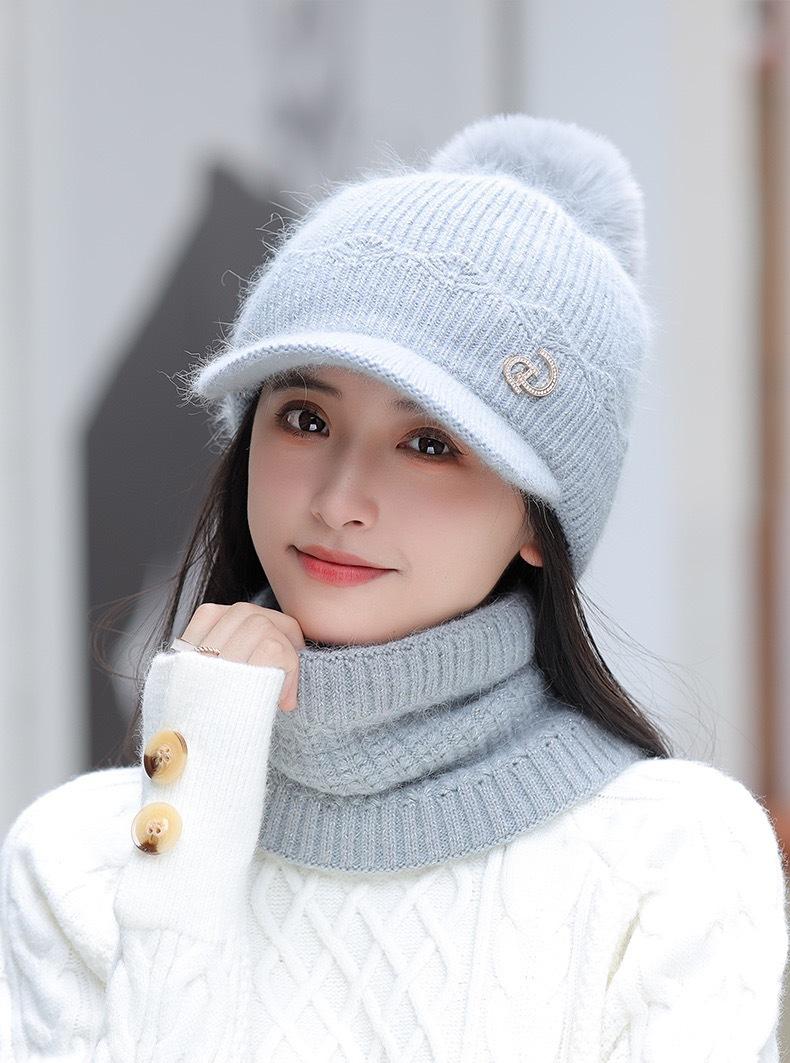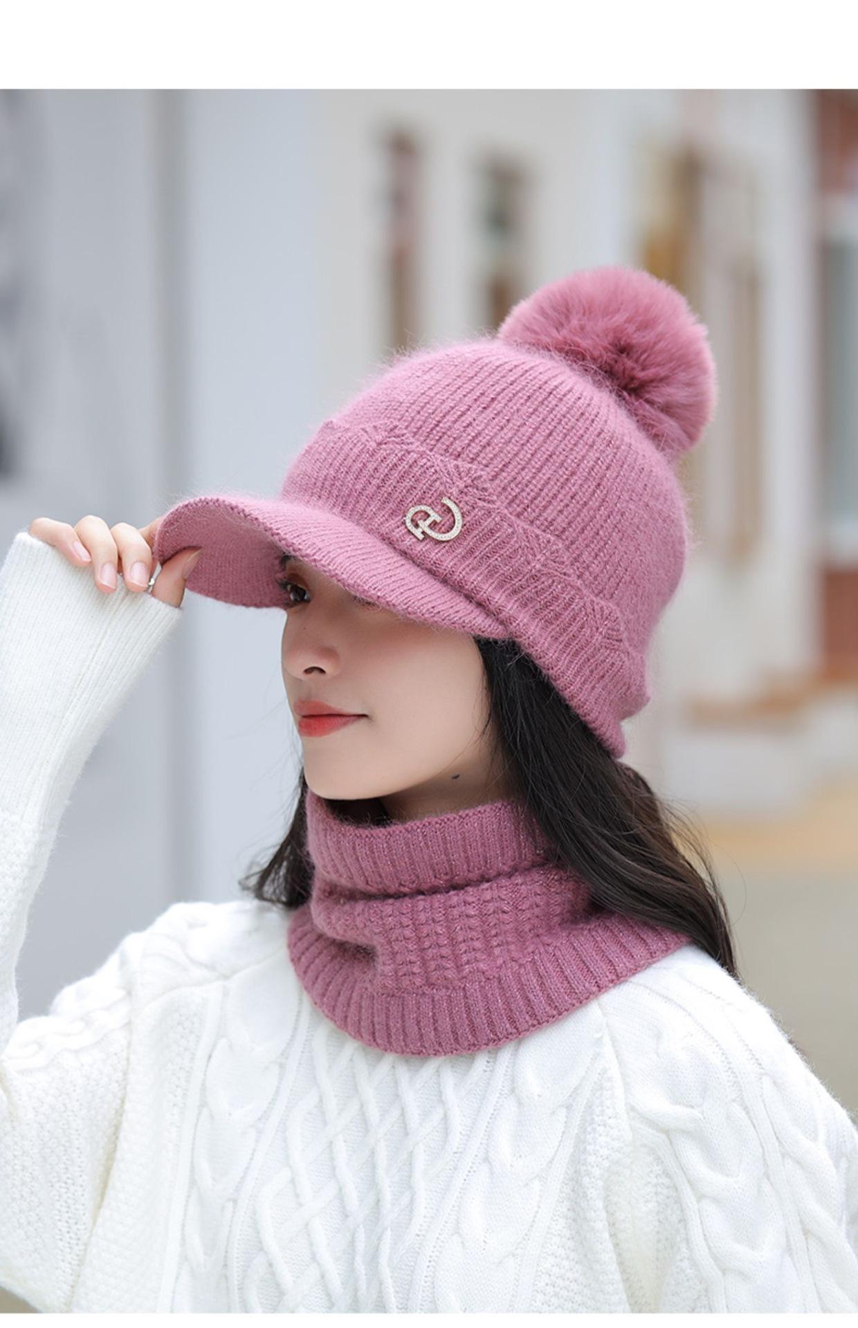 Sombrero nuevo bufanda gorra de béisbol de lana traje de dos piezas de invierno para mujer con bufanda sombrero de lana cálido para otoño e invierno