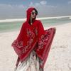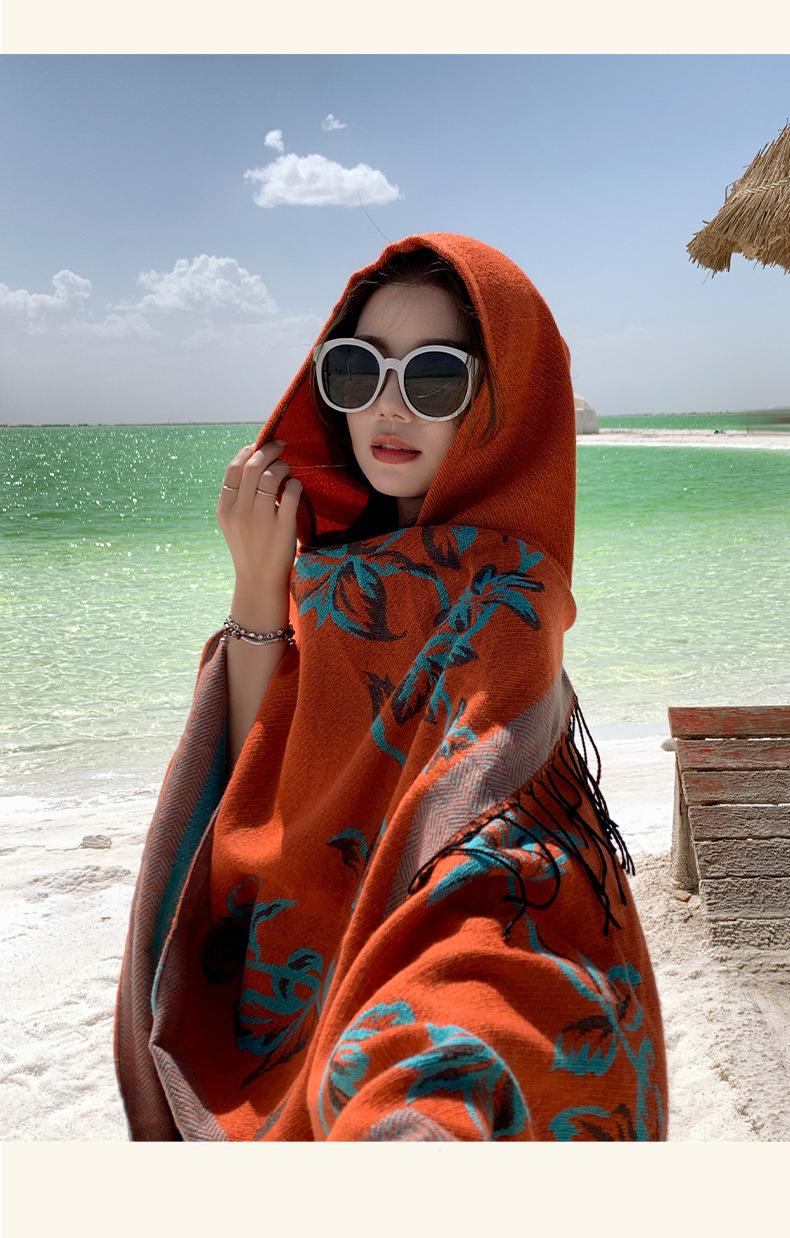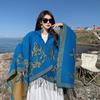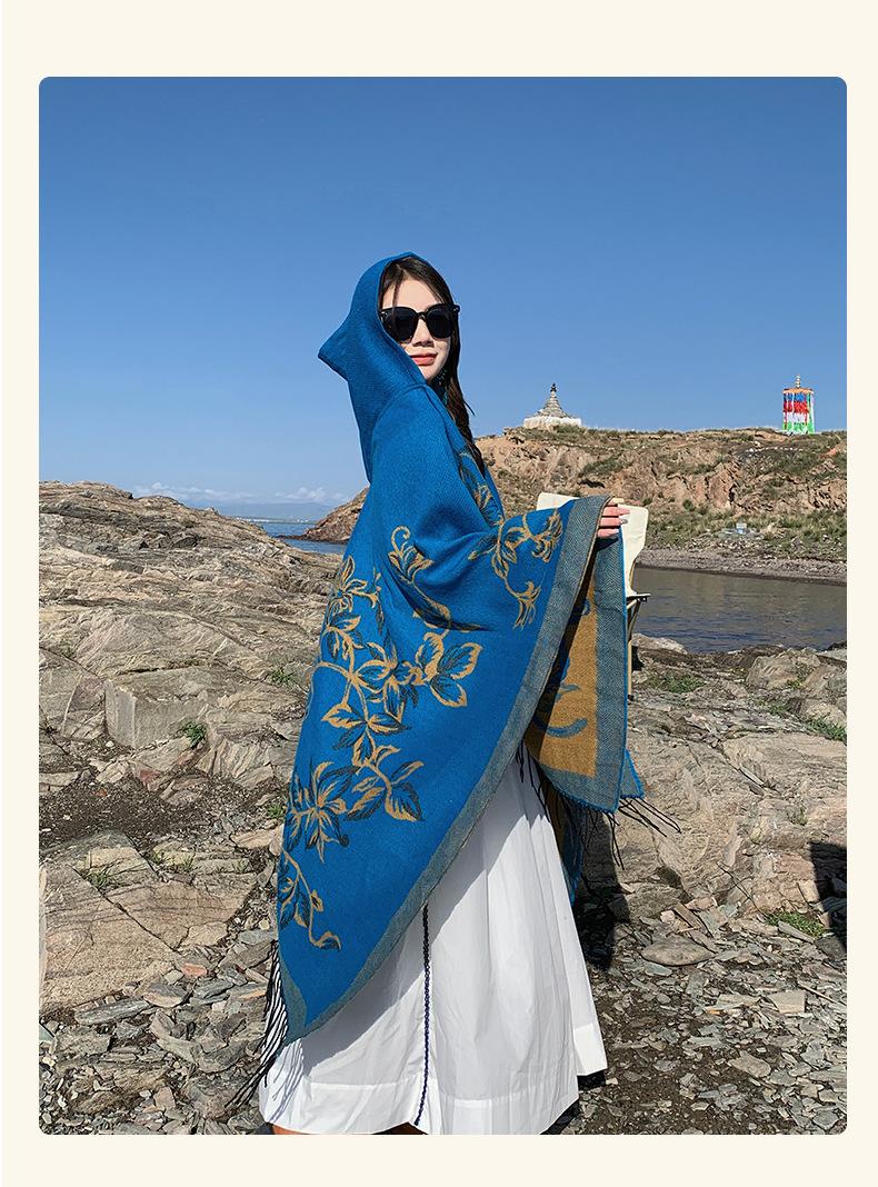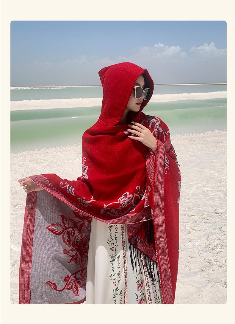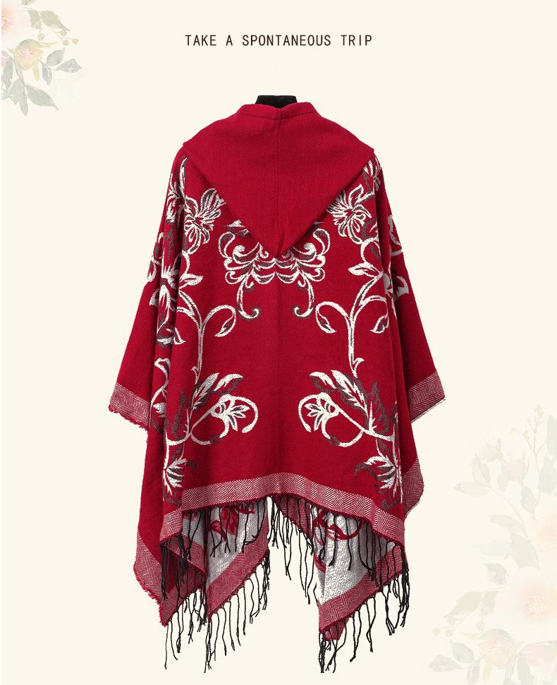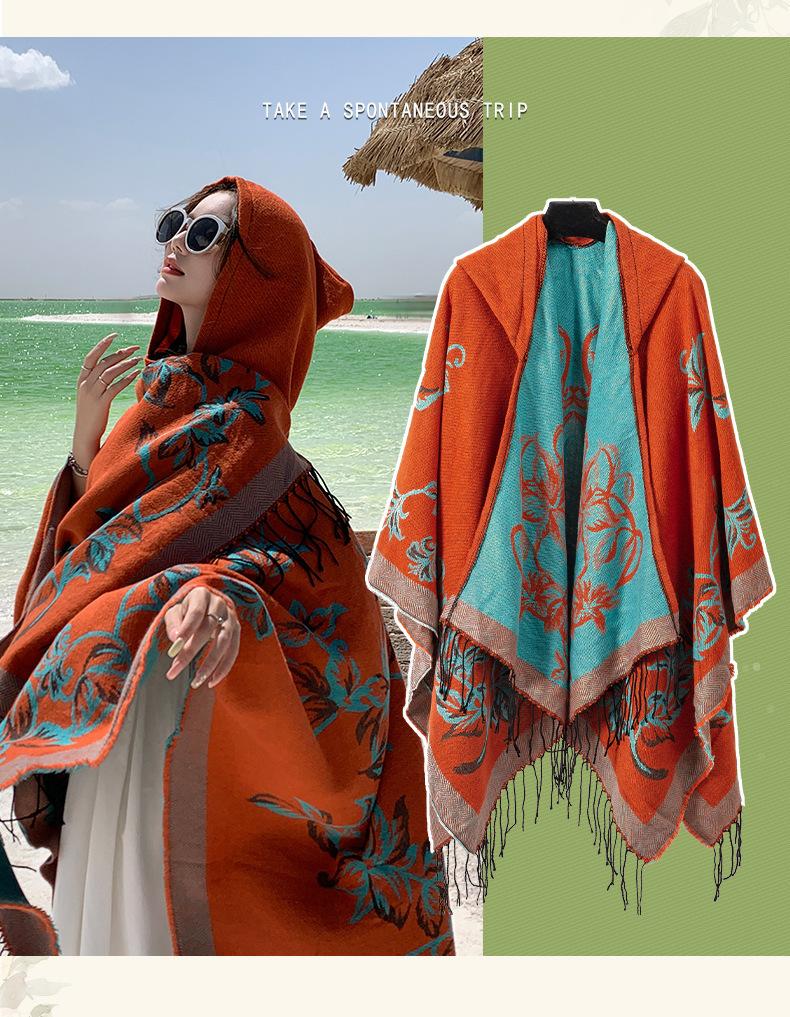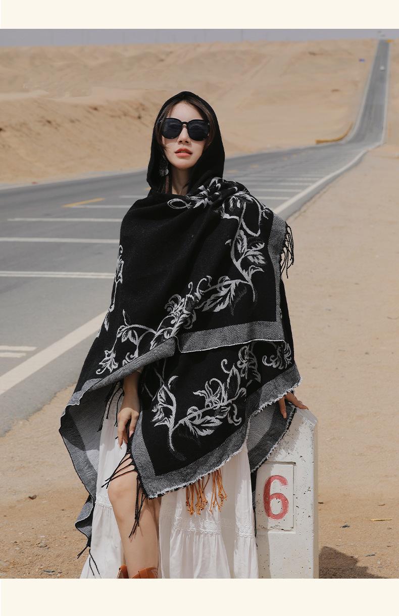Capa dividida de estilo étnico con capucha y borlas, chal Yunnan Xizang para viaje, capa exterior cálida para fotografía a doble cara