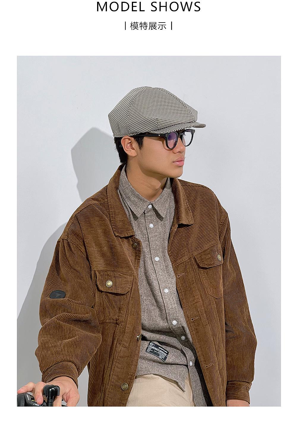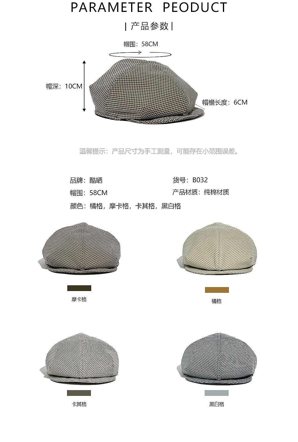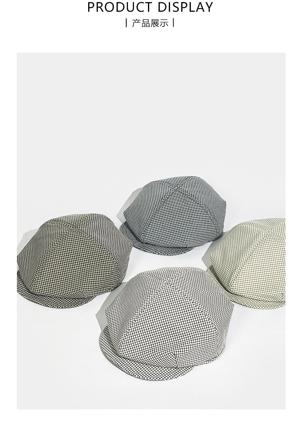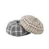 Boina Artística de Líneas a Cuadros Estilo Japonés para Mujer Verano Delgada Casual Combinable Sombrero Newsboy Sombrero de Pintor Británico Moderno