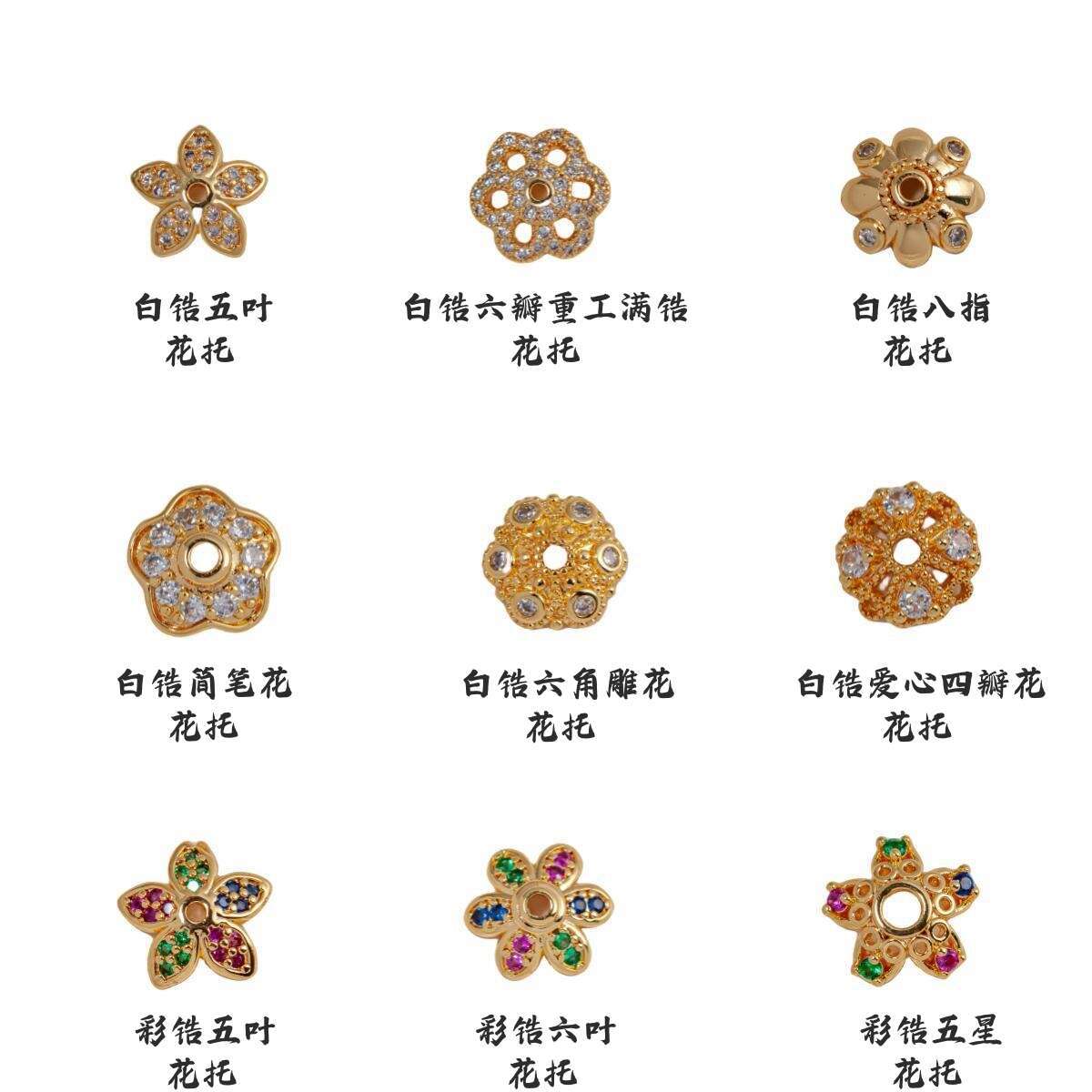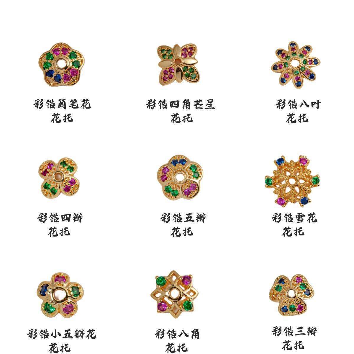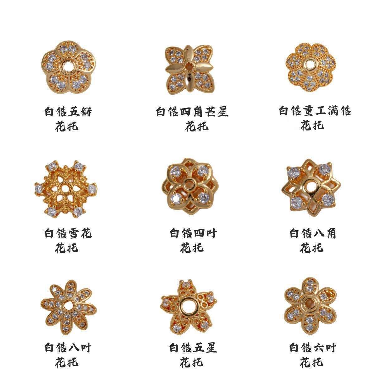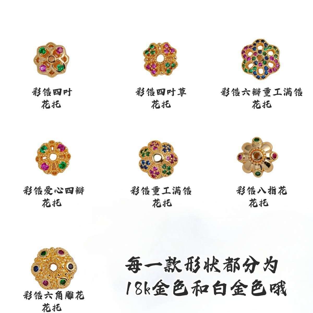 18K gold color zirconium eight-leaf receptacle, White gold color zirconium eight-leaf flower holder, 18K gold ...