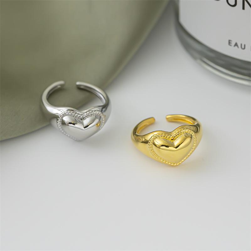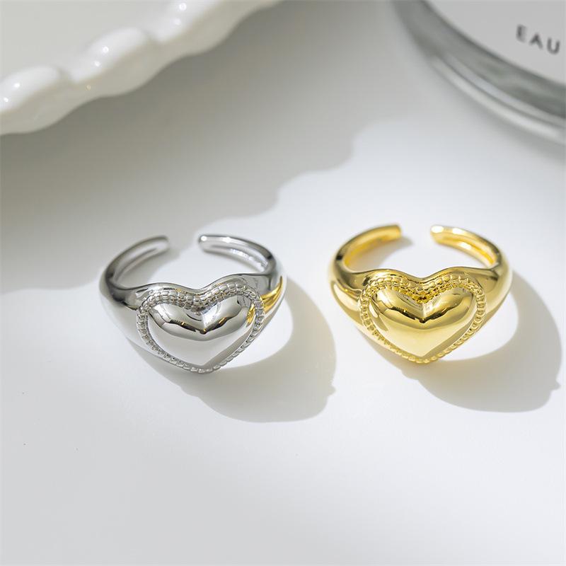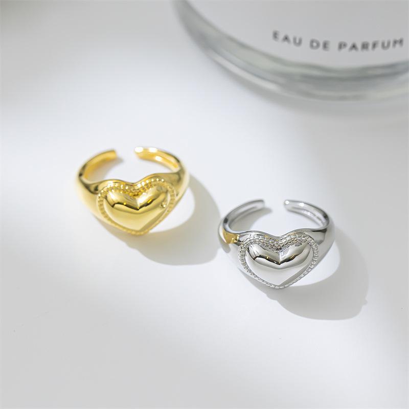 Moda europea y americana nuevo amor anillo liso temperamento todo-fósforo textura metálica creativo tridimensional amor anillo abierto para dedo mujeres