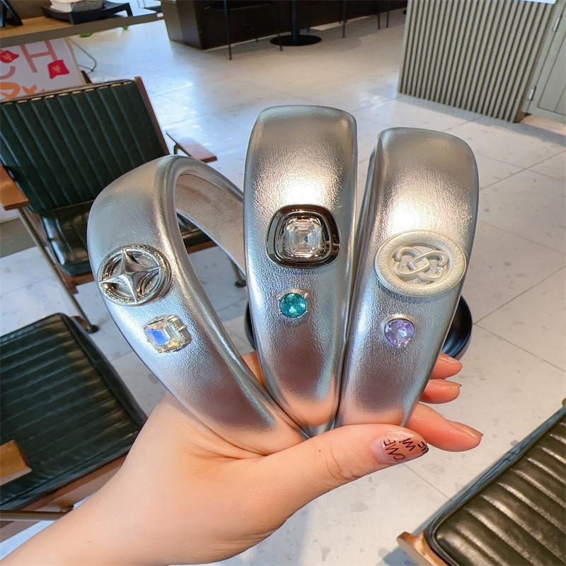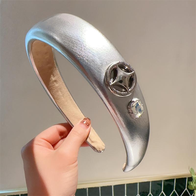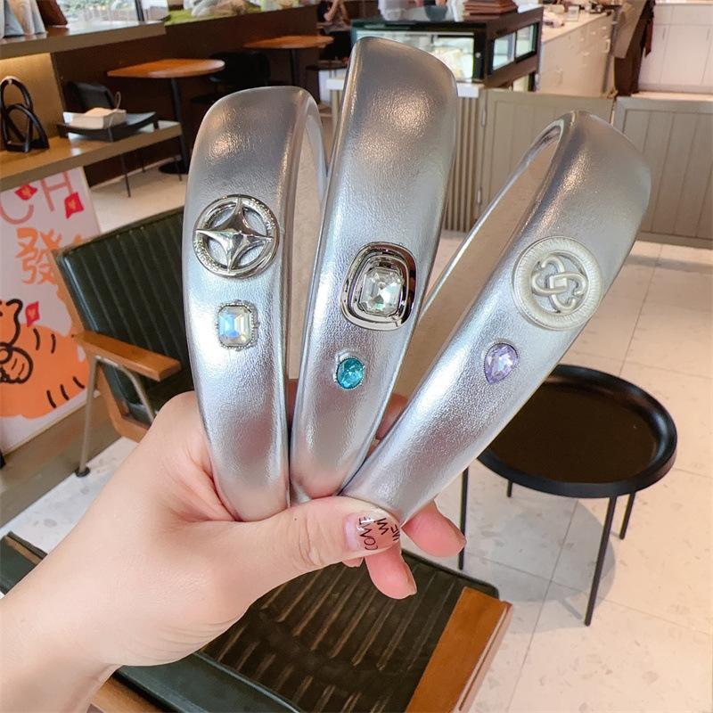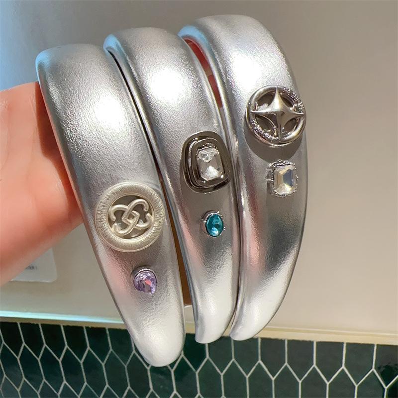 Diadema para el cabello plateada estilo dulce y picante para niña, estilo simple que combina con todo, accesorios para el cabello, estilo coreano Ins, tarjeta para el cabello