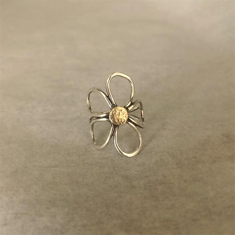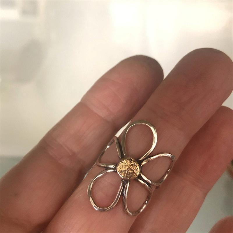 [Nombre] Anillo retro de flor electrochapado bicolor