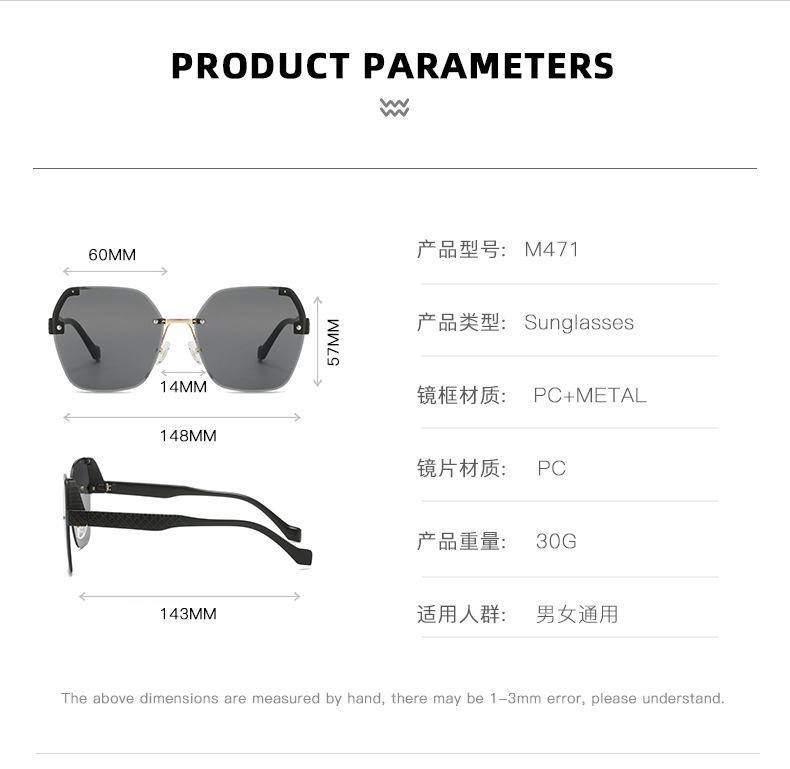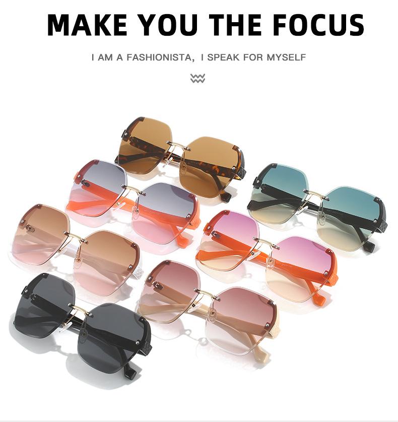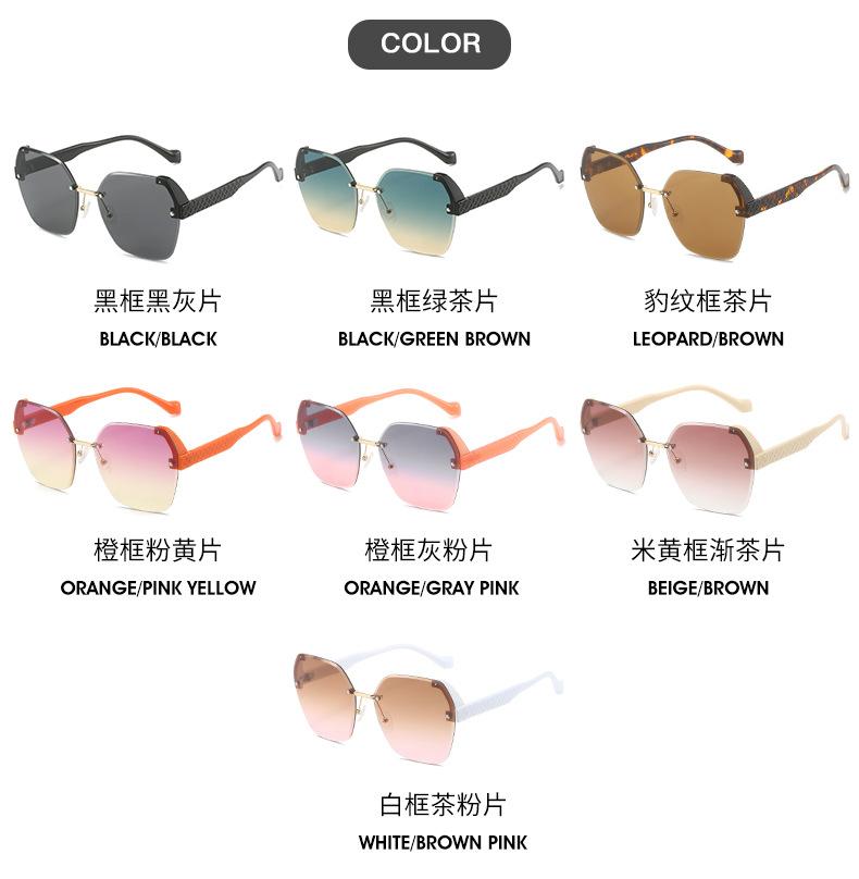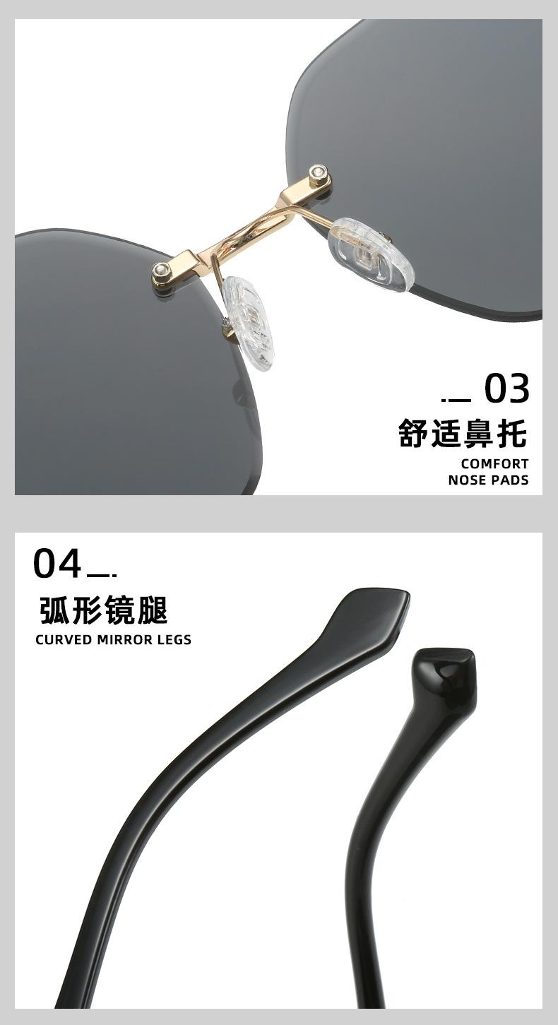 2023 nuevas gafas de sol de verano fábrica al por mayor transfronterizas gafas de sol sin montura para damas gafas de sol de moda para mujeres