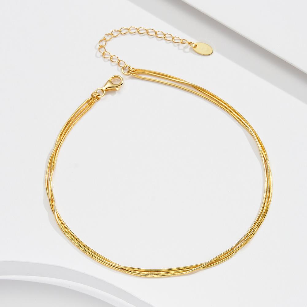 Mayo Nueva Tobillera Shangda Jewelry Cadena de Hueso de Serpiente de Tres Capas Plata Esterlina S925 Tobillera Simple Joyería Fábrica Venta al por Mayor