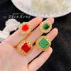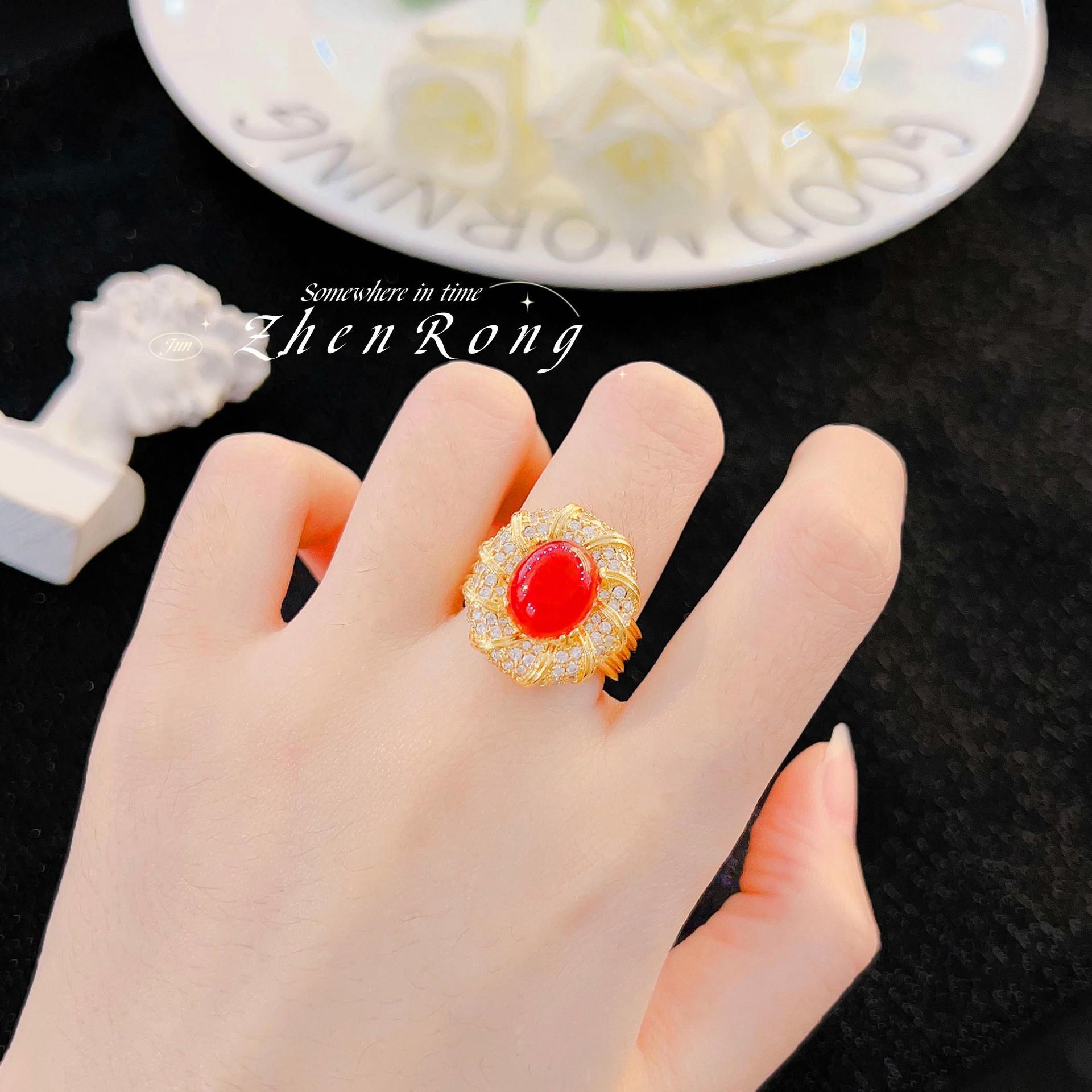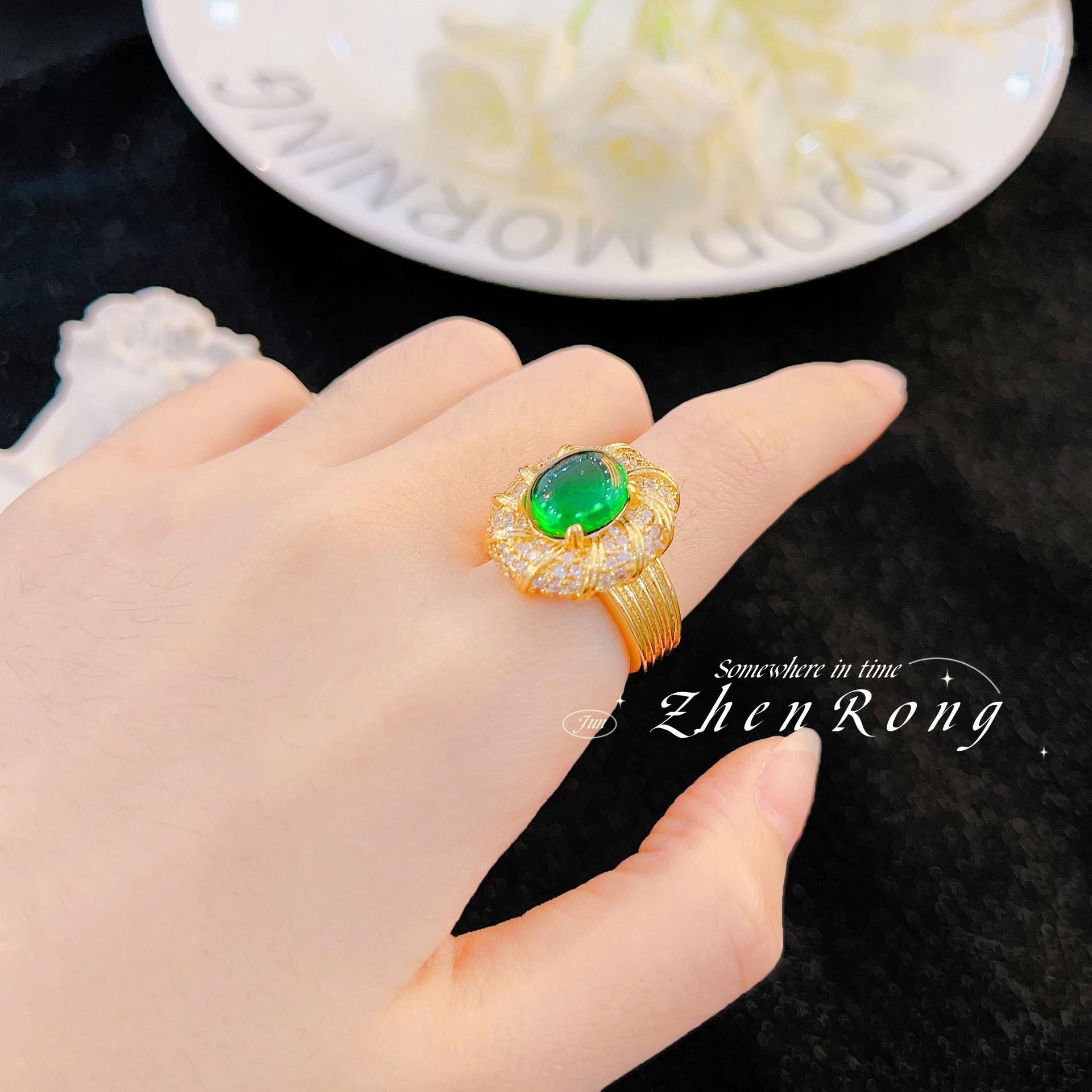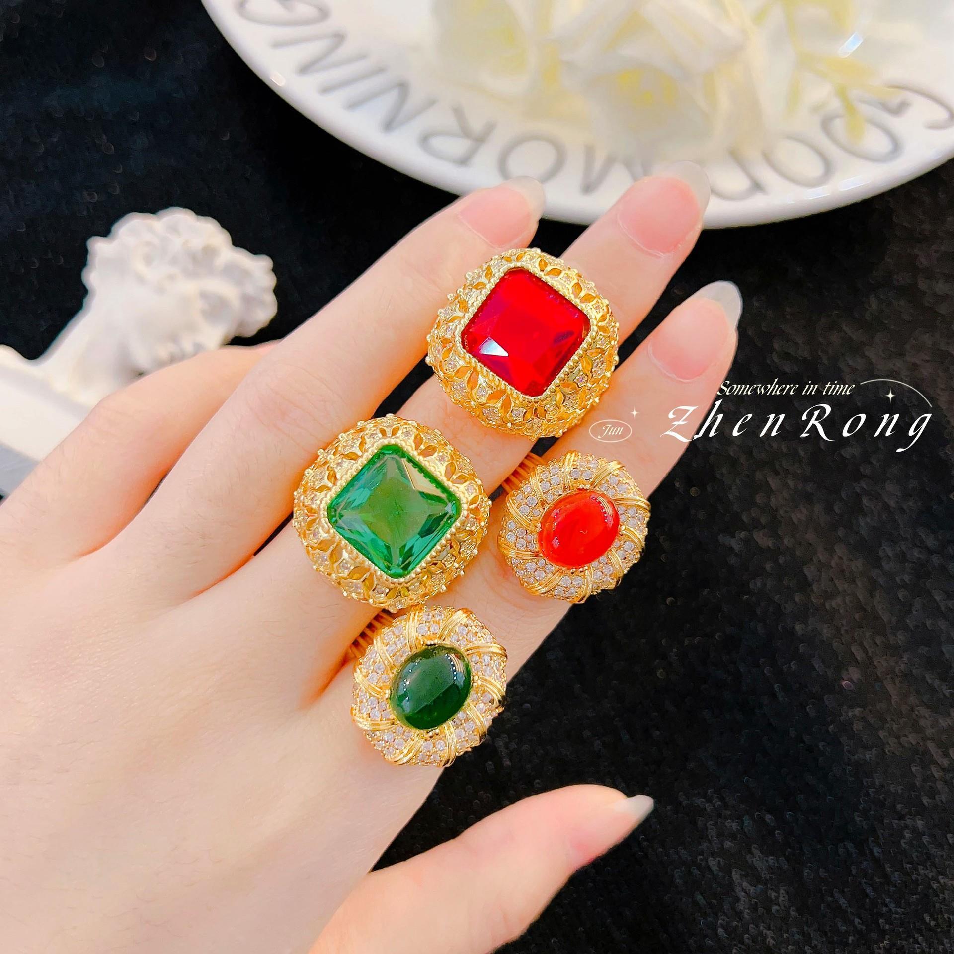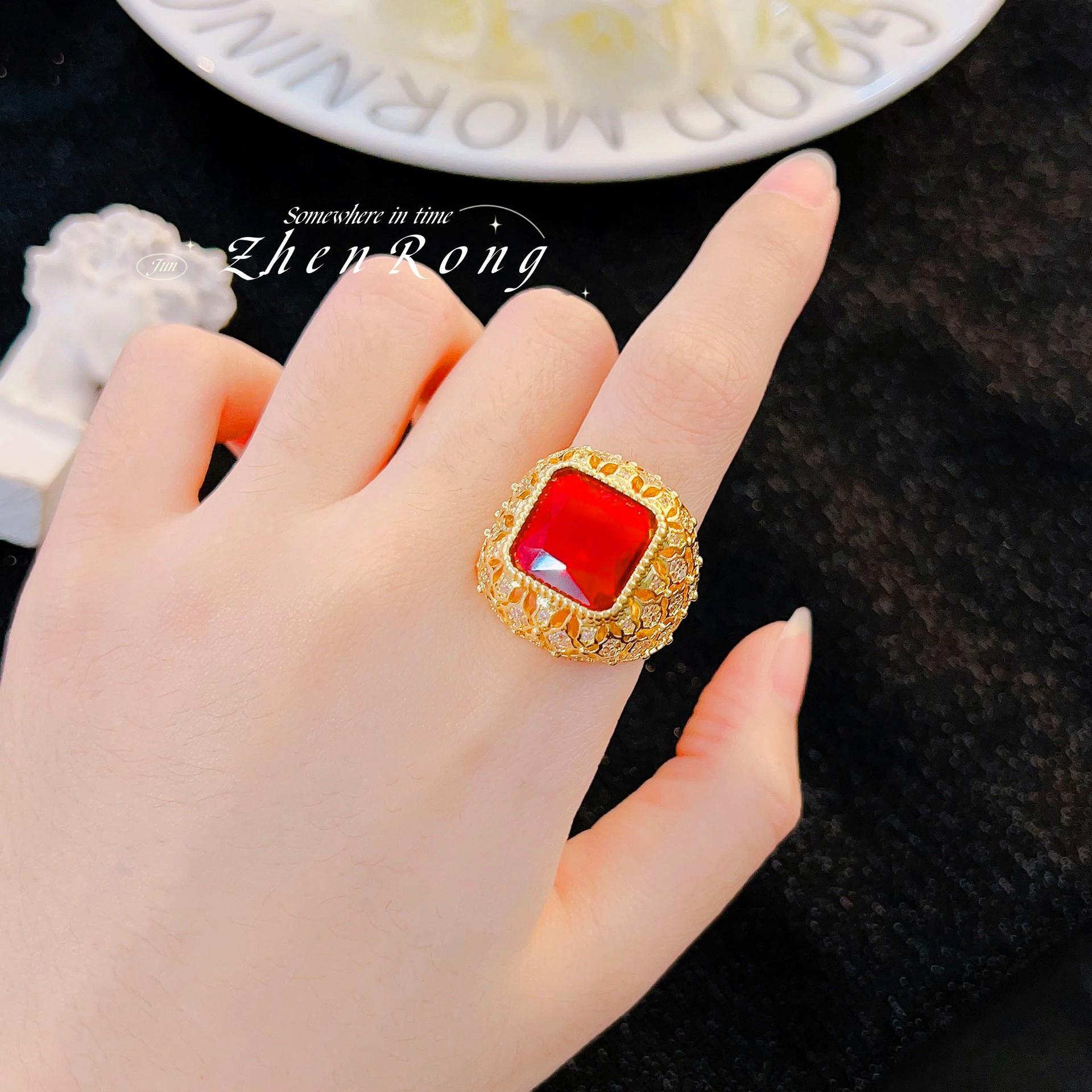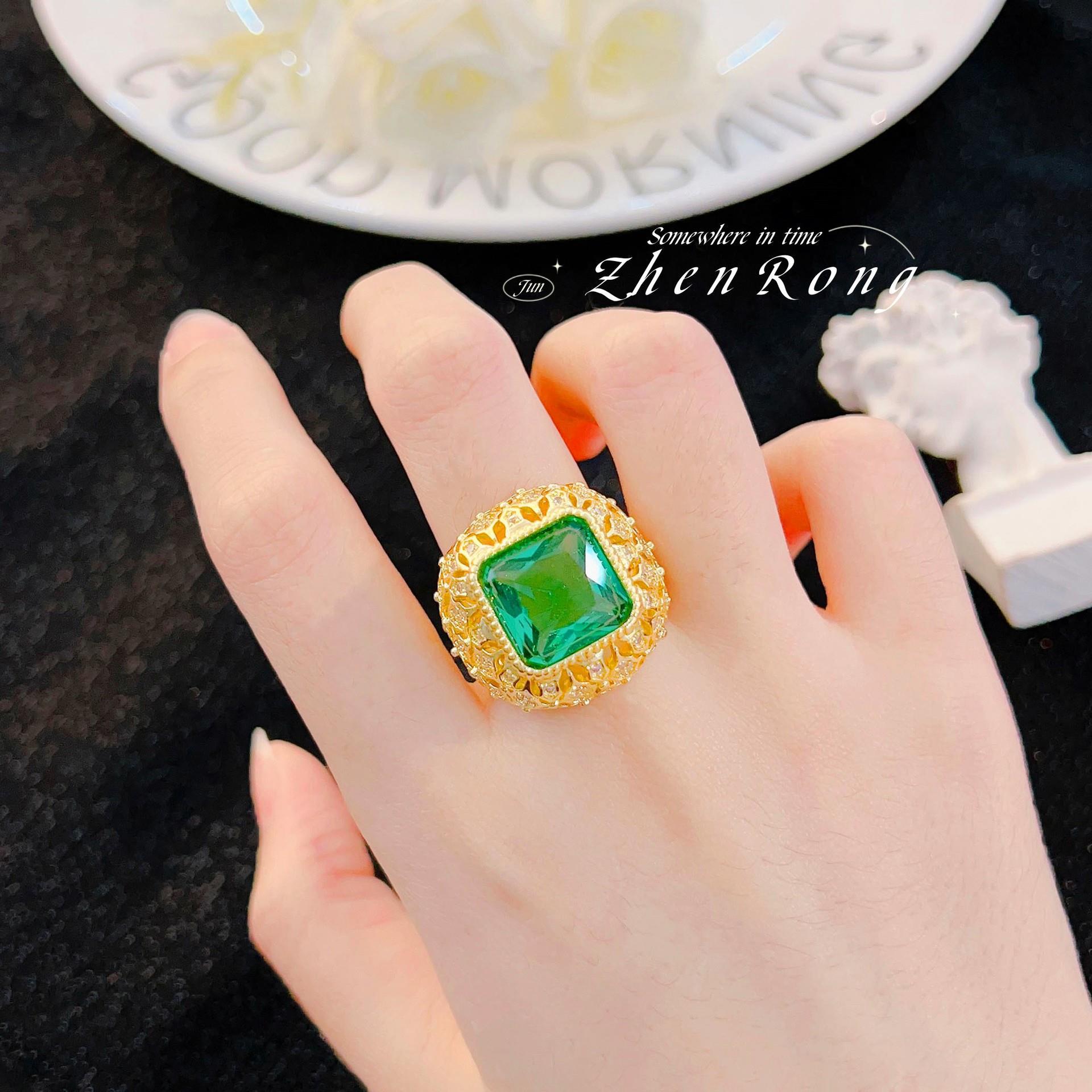 Anillo de Esmeralda Vintage Italiano Elegante Lujo Ligero Estilo Corte Diseño Nicho Anillo Rojo Paloma de Alta Gama