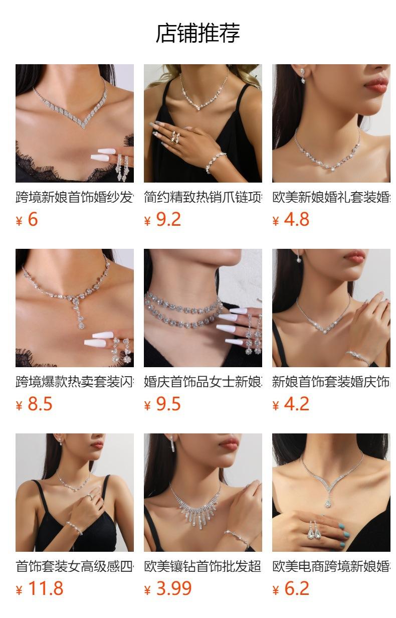 Joyería nupcial traje Pulsera Explosiones transfronterizas Collar Aretes Boda Mujeres Accesorios para vestido de noche Set de dos piezas