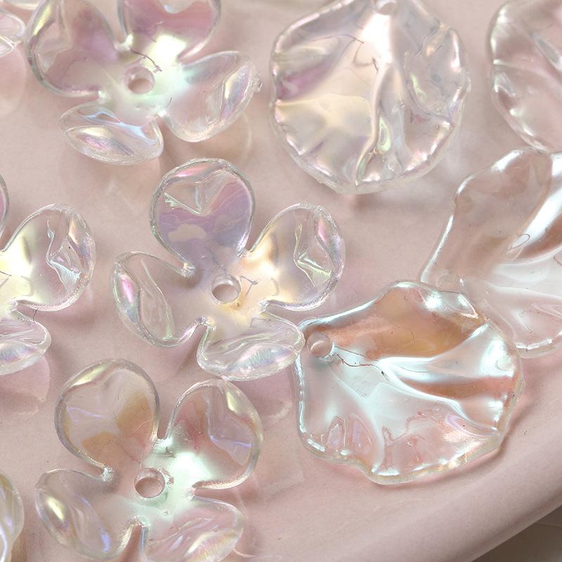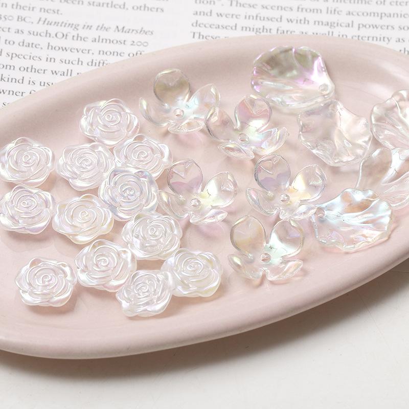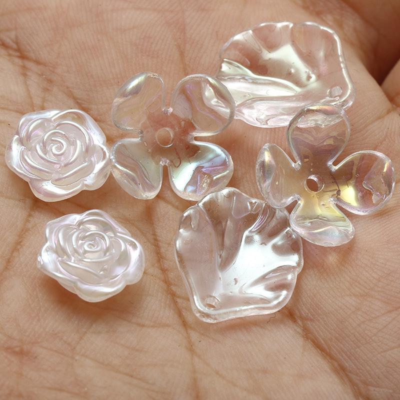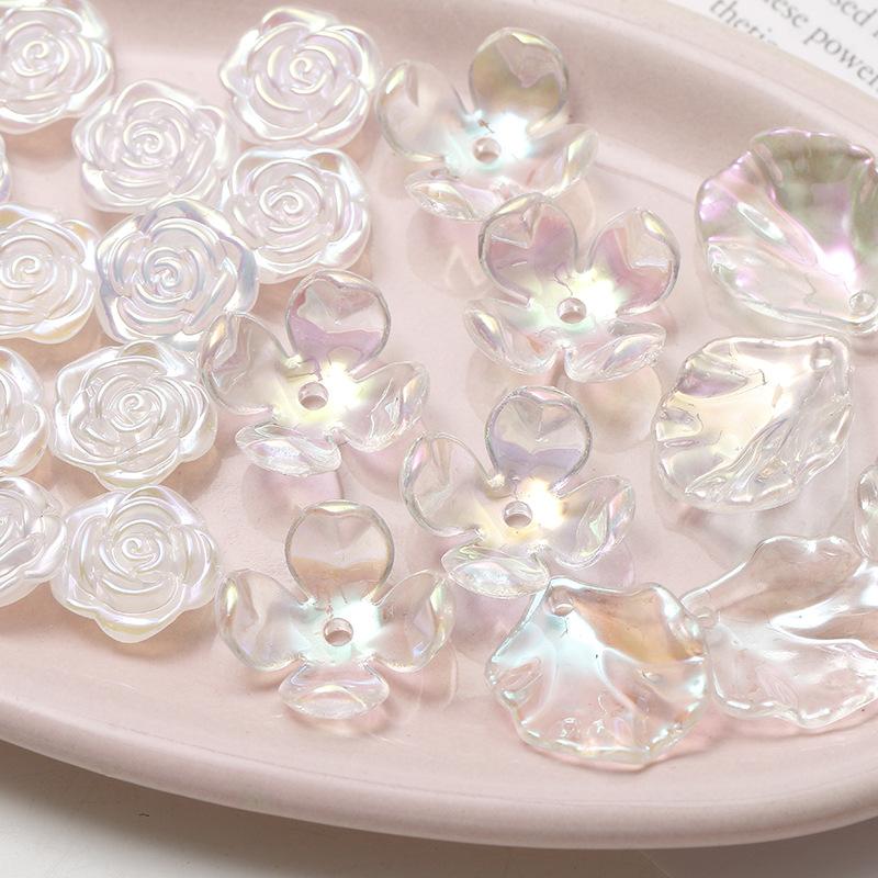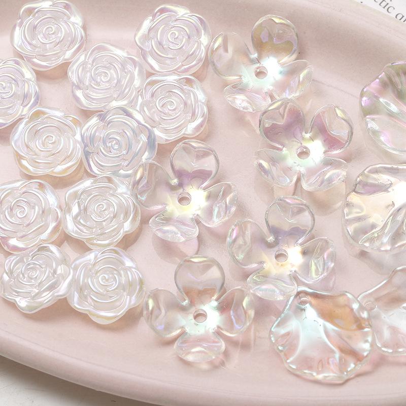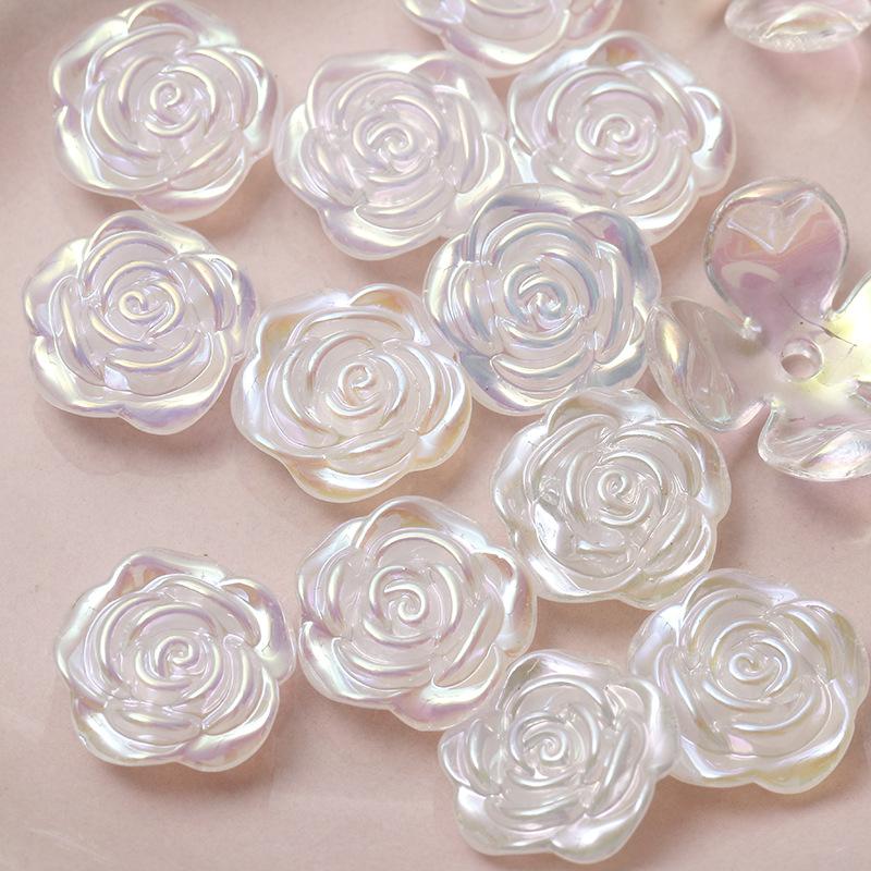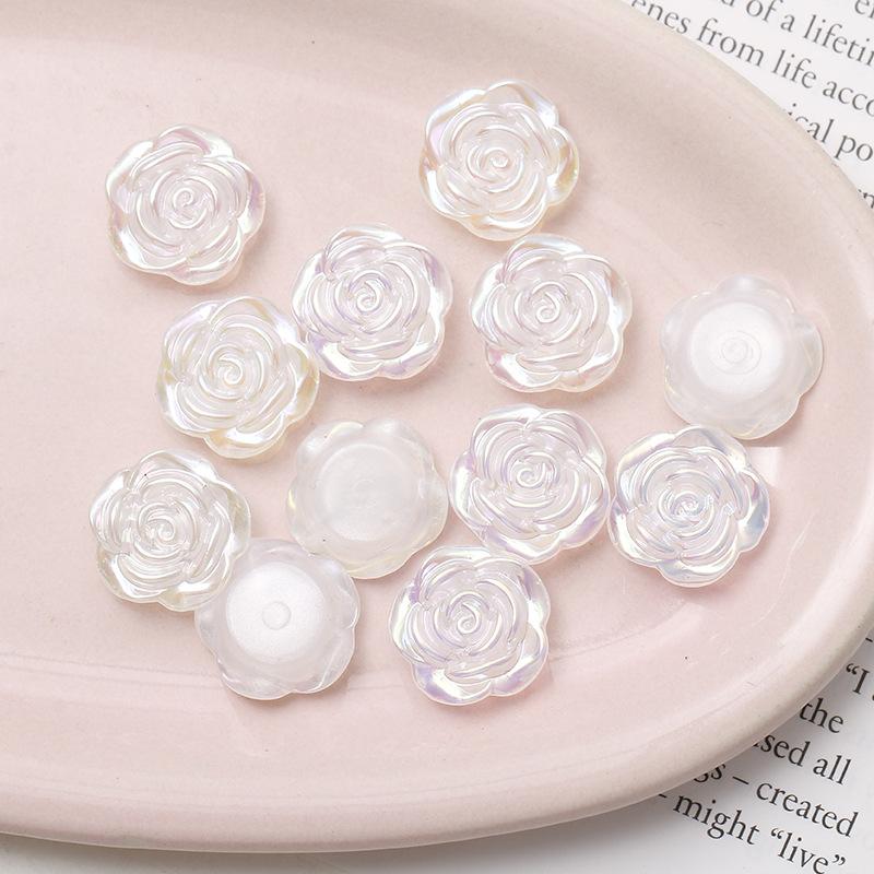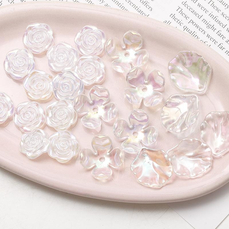 Pendientes de concha de flor de camelia de acrílico brillante, degradado transparente, colorido, para tocado, accesorios de joyería DIY, venta al por mayor