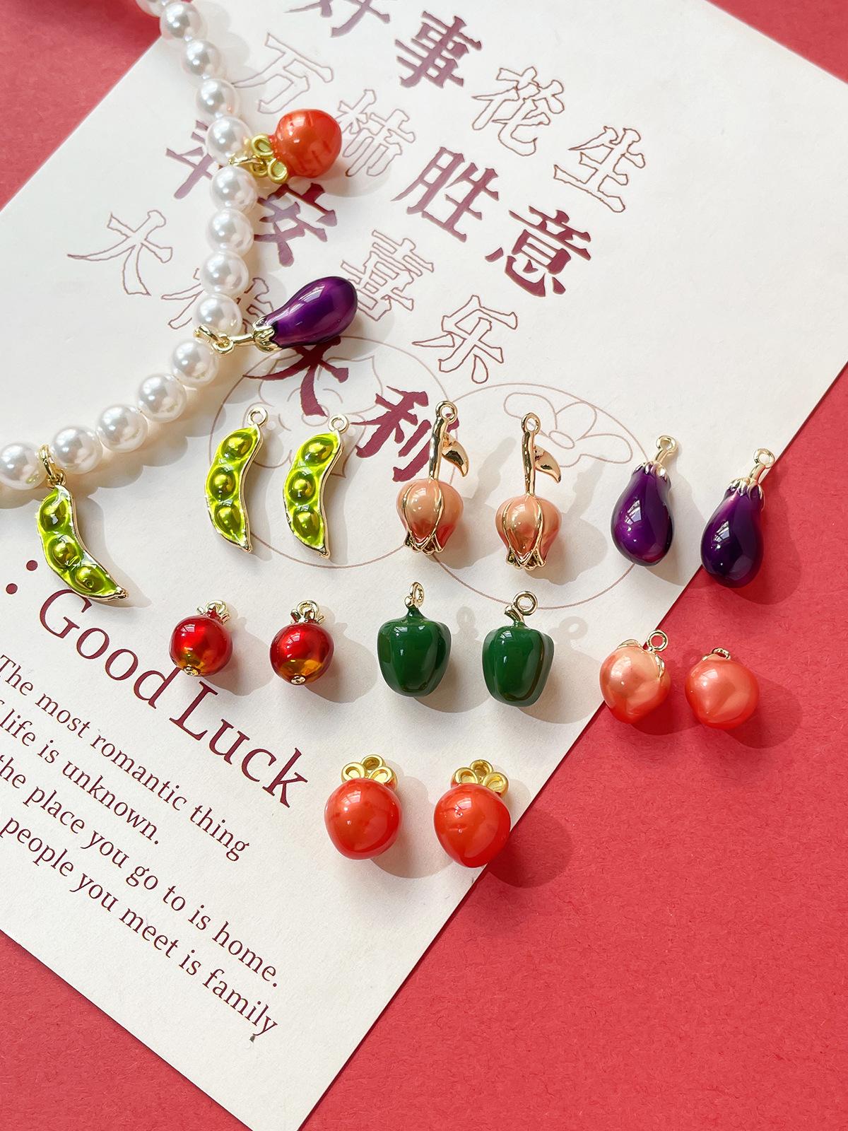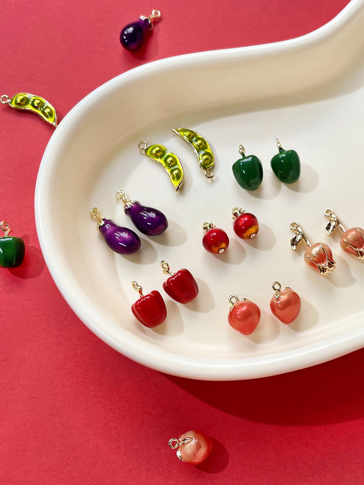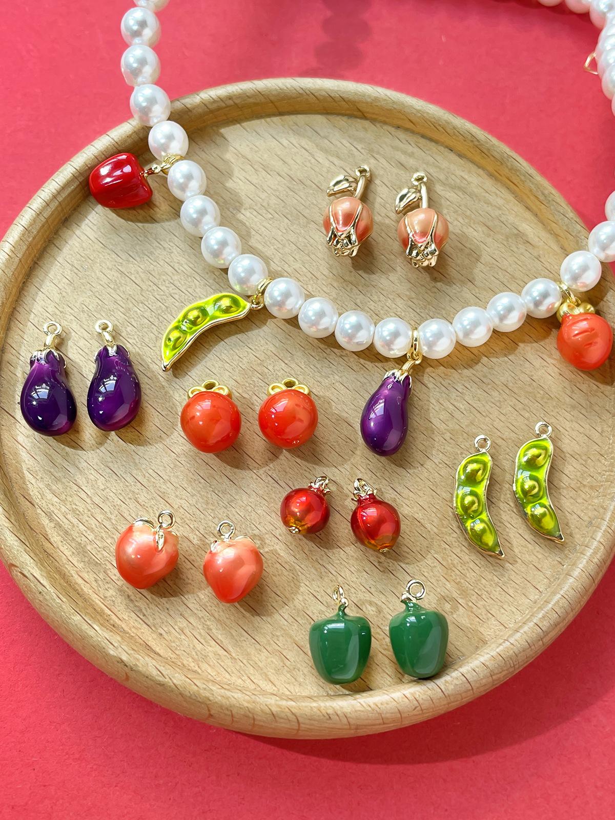 Colgante pequeño con forma de berenjena, melocotón, judías, fruta, para pulsera, collar, pendientes, cuentas, bonitos accesorios de joyería